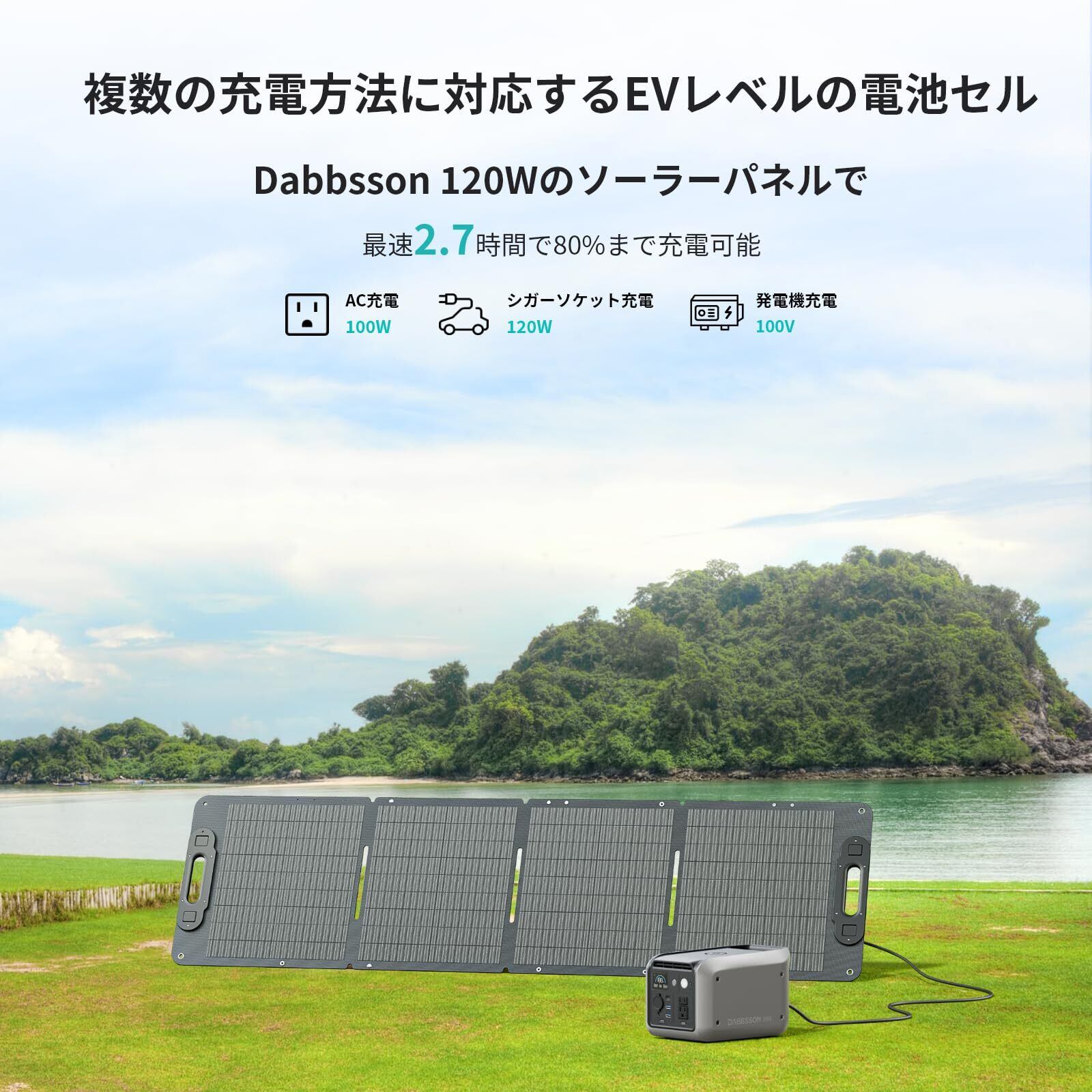 【長時間稼働+多彩な充電方法】300Eは電力ロスを削減し、低消費電力の機器を駆動する際の稼働時間がさらに長くなります。40Wのノートパソコンを稼働する場合、7.5時間駆動可能、他社製品より駆動時間を1.4倍以上延長します。従来のモデルに比べて大幅にパワーが向上しました。スマートフォンやパソコンに加え、ライト、小型炊飯器、小型車載冷蔵庫、扇風機、電気毛布、プロジェクターなど、ひとり暮らしや防災、ソロキャンプに最適です。多彩な充電方法があり、100WのAC充電や120Wのソーラー充電に加え、12Vおよび24Vのシガーソケット入力も利用できます。300Eは最大120Wのソーラーチャージに対応,わずか3.4時間で80%充電可能