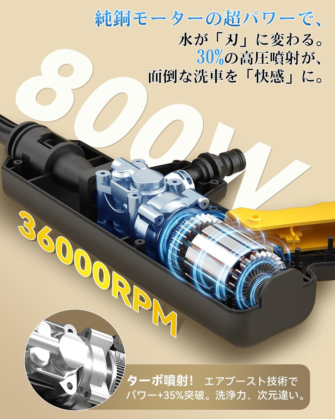 【人気商品】高圧洗浄機 コードレス 充電式【工場直販 2025新登場高圧洗車機】10Mpa最大吐出压力 吐出水量8L/min 20000mAh大容量バッテリー 6in1ノズル付き 800Wブラシレスモータ 自吸式 45*20 10M噴射距離 軽量 強力出力 噴射圧30bar ABS航空材質 充電式高圧洗浄機 (em-yellow)