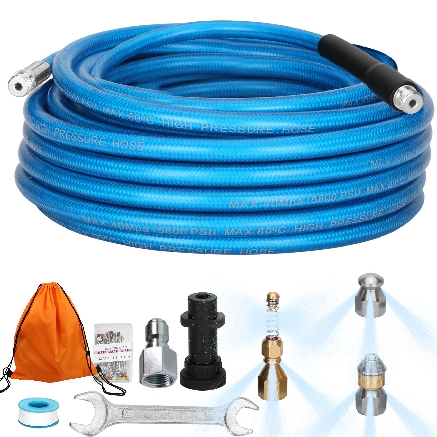 【数量限定】ankonケルヒャーパイプクリーニングホース 10m/15m 3種類スプレーノズル付き ケルヒャー配管洗浄ホース ケルヒャーK2,K3,K4,K5,K6,K7,Kmini,ジャパネットJTK Sサイレントに適用排水管洗浄ホース ケルヒャー逆噴射高圧洗浄ホース(10m青)