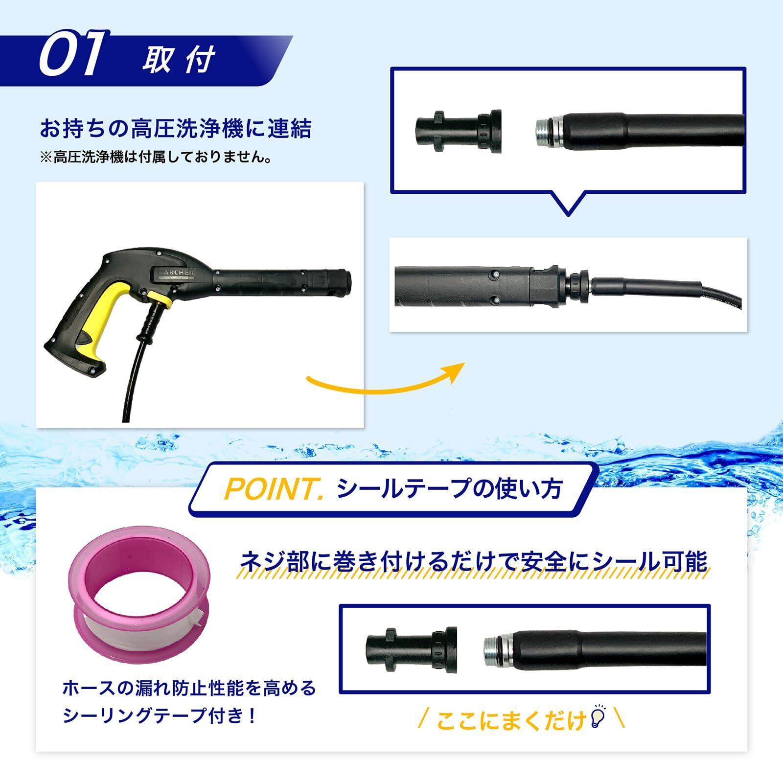 【ケルヒャー対応モデル】SELENEFF パイプクリーニングホースは、ケルヒャー (Karcher) K2 K3 K4 K5 K6 K7 JTK25 JTK28 JTK38 に対応しています。付属の専用アダプターで高圧洗浄機に簡単に接続可能。※お手持ちのケルヒャー高圧洗浄機と適合するか、取付アダプターの形状をご確認ください。