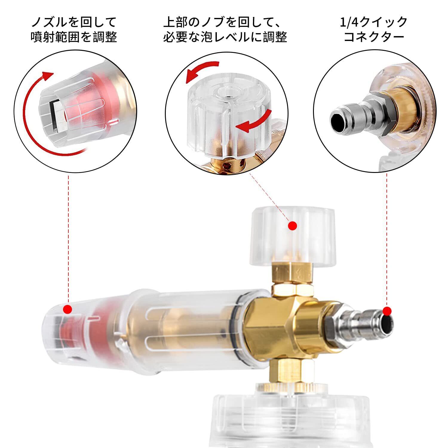 フォームキャノン 1.0L 洗車用フォームガン 1/4クイックコネクター付き 圧力洗浄ガン用 高圧洗浄機用 フォームランス 高発泡 ダイヤル付き 泡量調節可能 スノーフォーム (透明)