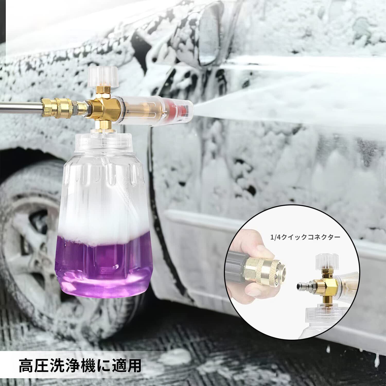 【特別価格】フォームキャノン 1.0L 洗車用フォームガン 1/4クイックコネクター付き 圧力洗浄ガン用 高圧洗浄機用 フォームランス 高発泡 ダイヤル付き 泡量調節可能 スノーフォーム (透明)