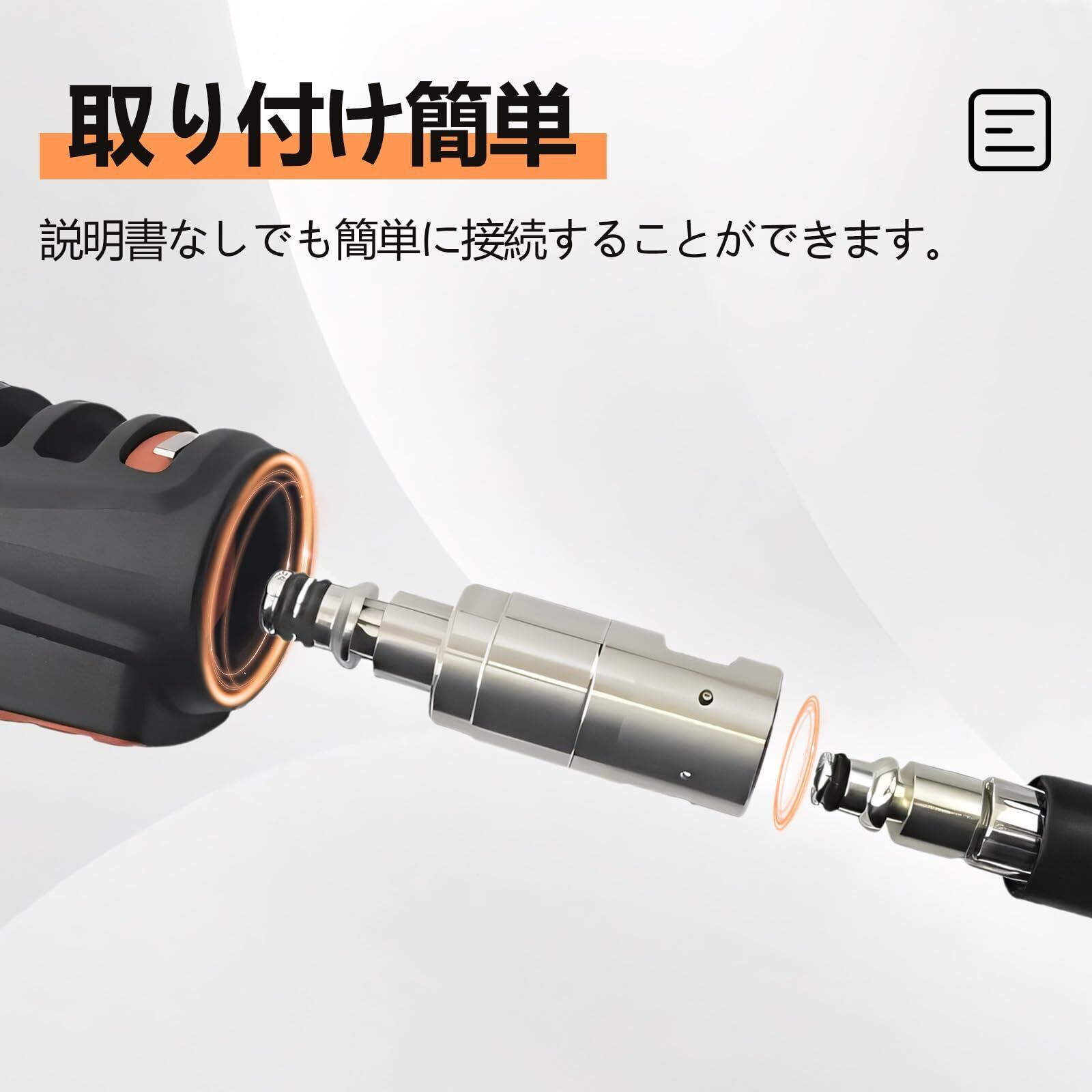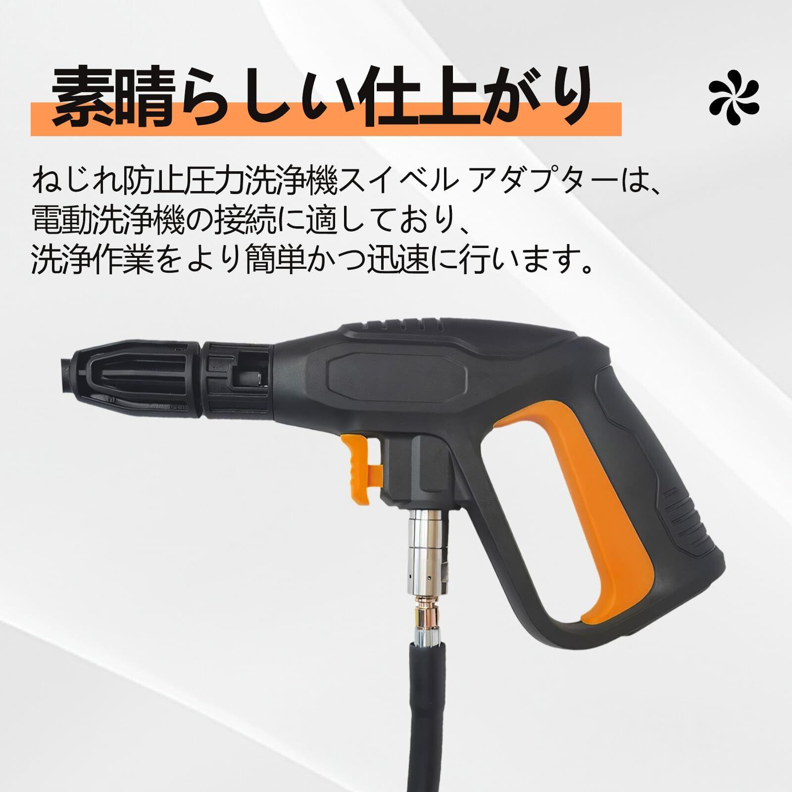 プロ仕様のスイベルデザイン:ステンレス製の360°スイベルアダプター。作業中のホースのねじれを完全に防ぎ、洗浄効率を高めます。