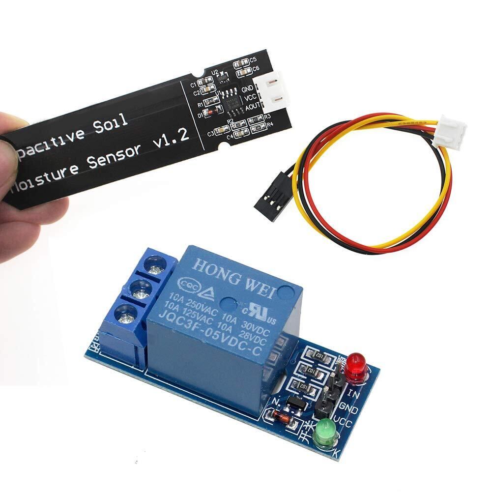 自動水やり装置 DIYキット 静電容量式土壌水分センサー + 小型ポンプ DC3V 5V + 1M ホース + リレーモジュール 1チャンネル ガーデニング 家庭園芸 盆栽 庭園 花植 木鉢 植木鉢