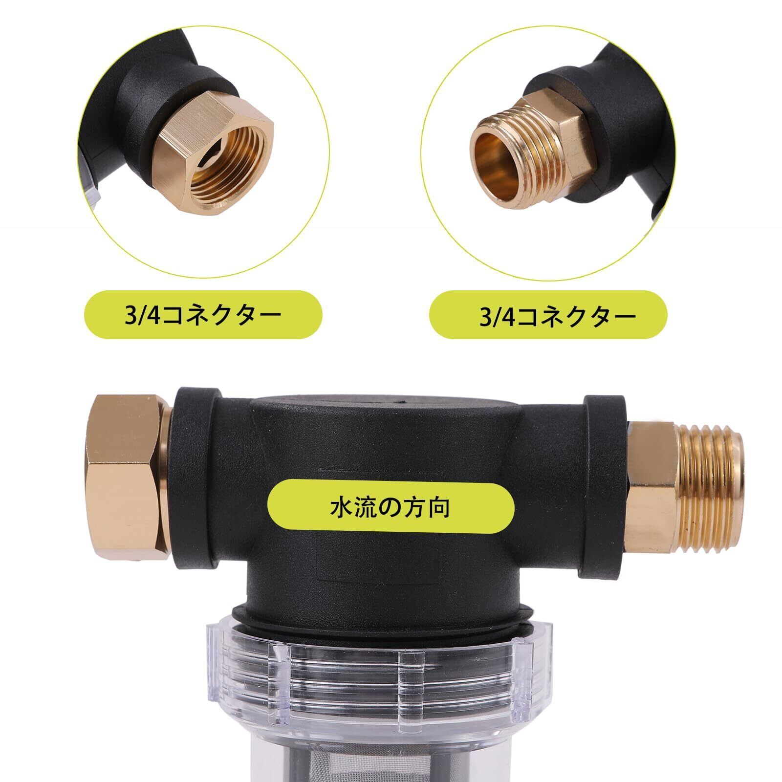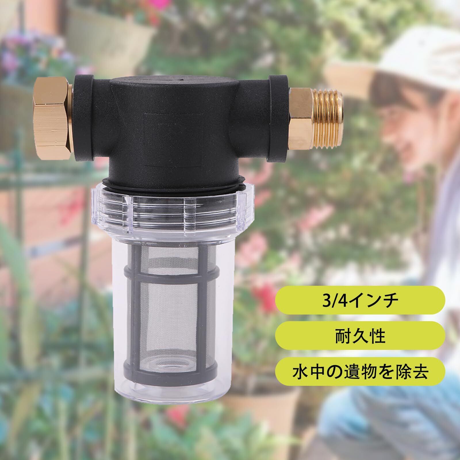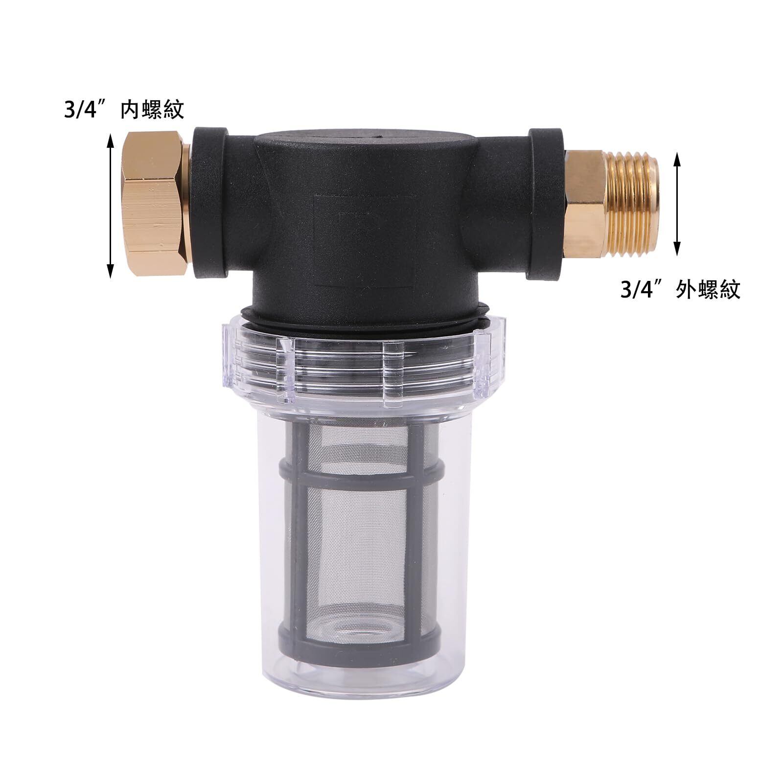 【理想のサイズ】:3/4インチのメス入力口と3/4インチのオス出力口を備えたガーデンホースインテルフィルターで、100メッシュのフィルターが装備されています