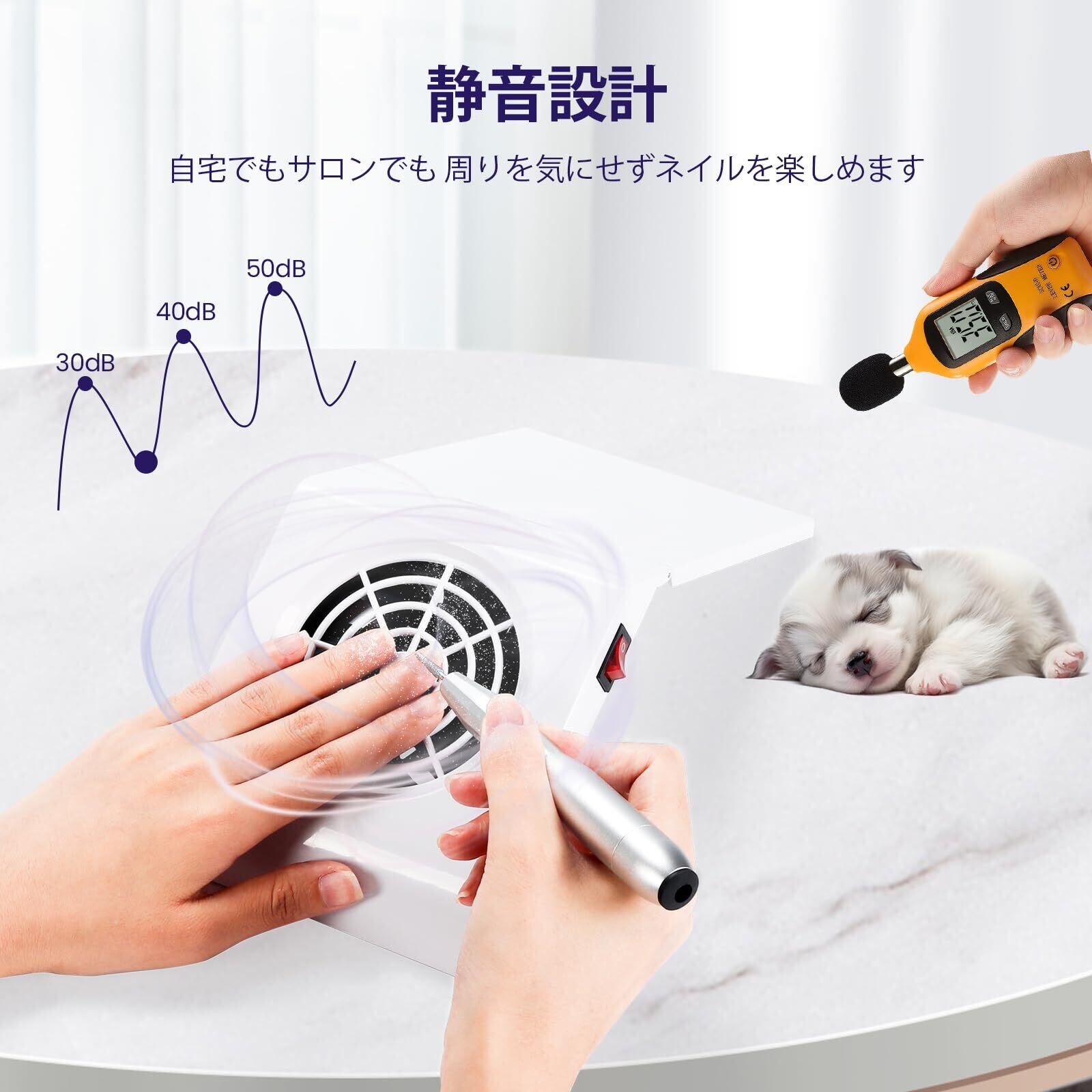 【3300RPM超強力吸引】ネイルダストを瞬時にキャッチ! 3300rpmの超強吸力でネイルダストを一掃:当ネイルダスト吸塵機は、最大3300rpmの強力な吸引力を備えています。ネイルアート作業中に発生する微細なダストや粉屑を瞬時に吸い込みます。爪を磨いたり、ポリッシュを削ったときに飛散するパウダーが、周りに散らばることを心配する必要がありません。この強力な吸引力により、作業環境を常にきれいに保ち、ネイルワークを快適に行えます。