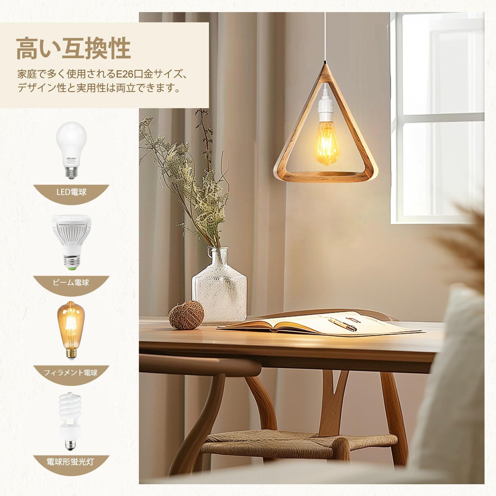 DiCUNO コード付きソケット E26 電球ソケット コンセント 吊り下げ スイッチ付き 4m ホワイト オシャレ 1個セット