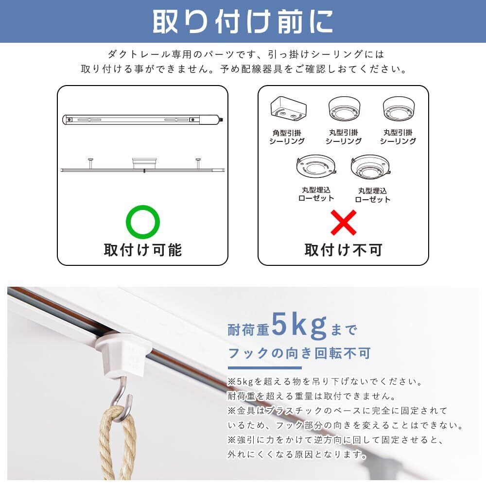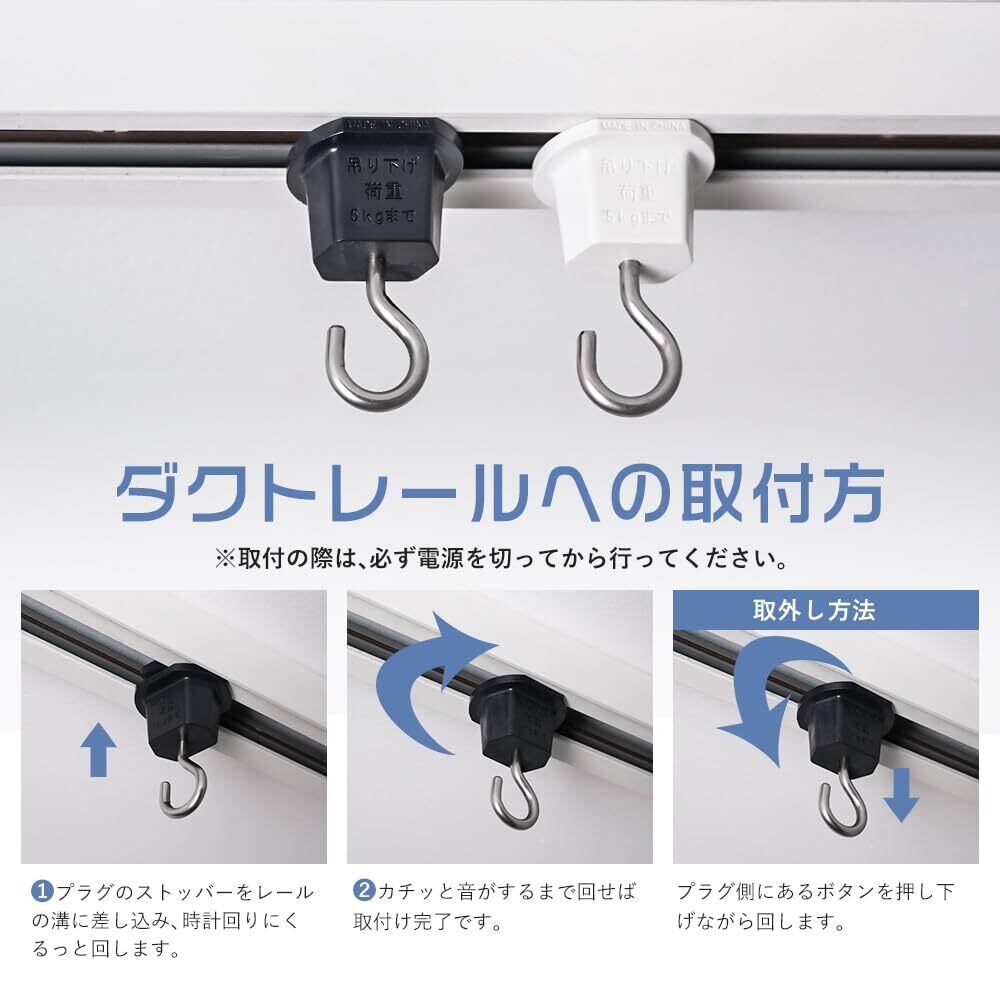 【工事不要・簡単取付け】:天井取付レール用のフックです。レールにはめ込んで回すだけで固定できます!金具はプラスチックのベースに完全に固定されており、回転しないので非常に安定しています。手軽に取り付けることも出来るので、初心者でも女性でも便利です!