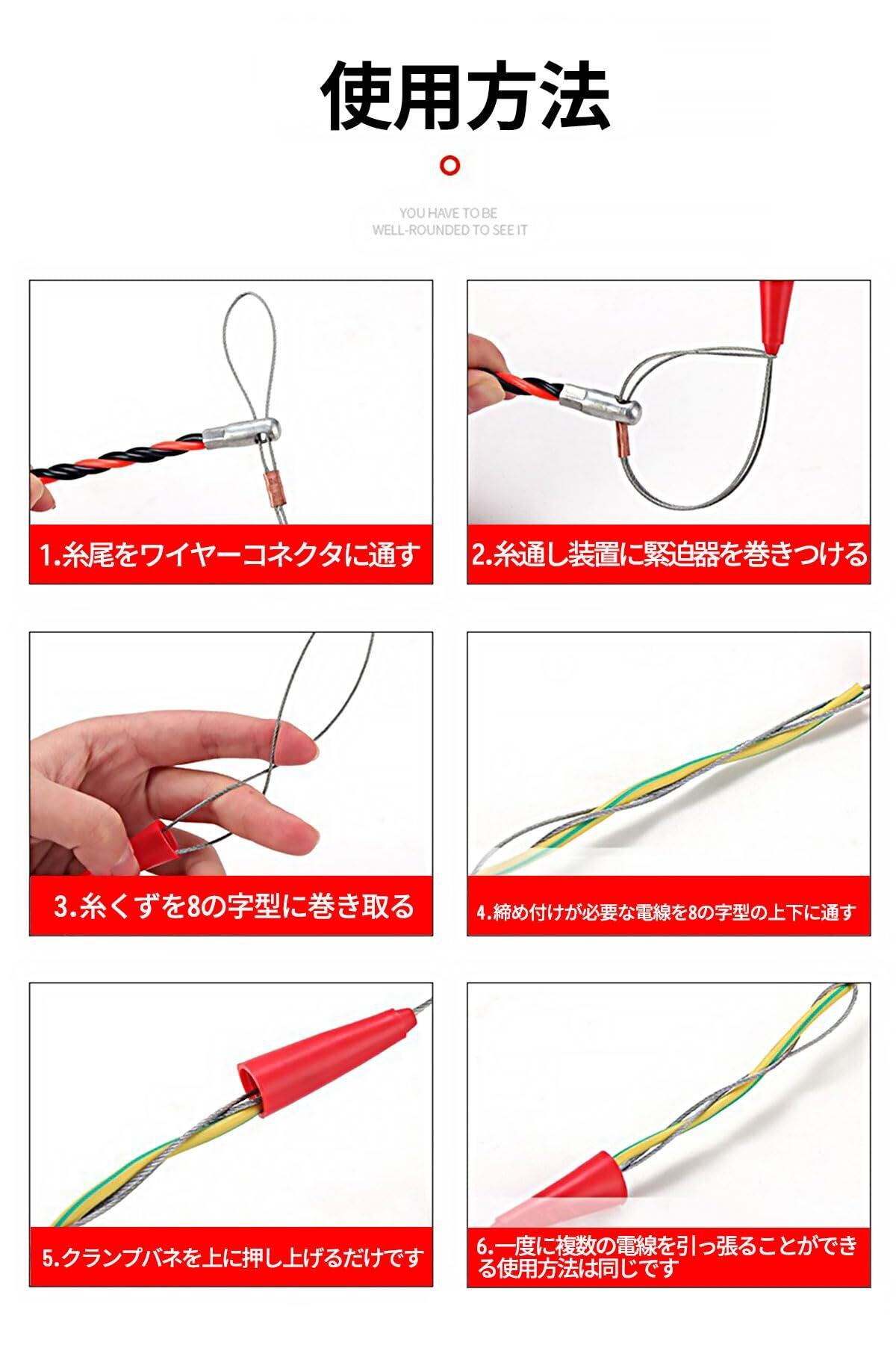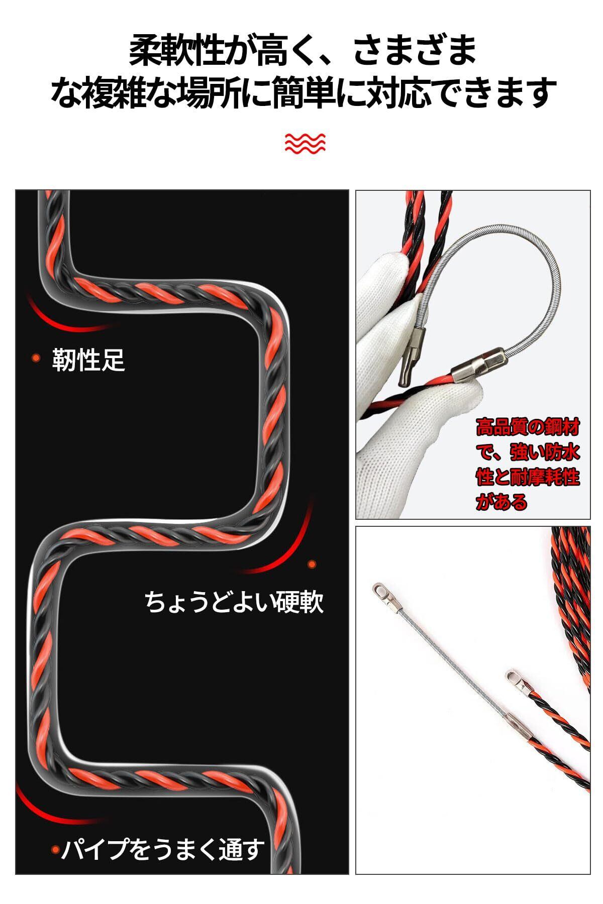 【作業効率の向上】この入線ワイヤーは、電気・通信・LAN配線工事をスムーズに行うための強い味方です,室内通線作業時にはすべての曲がりをスムーズに通過でき、コーナー時にも安全に通過できます。 角刈り先端が特徴で、複数のワイヤーを簡単につなぐことができ、作業の手間を減らすことができます。
