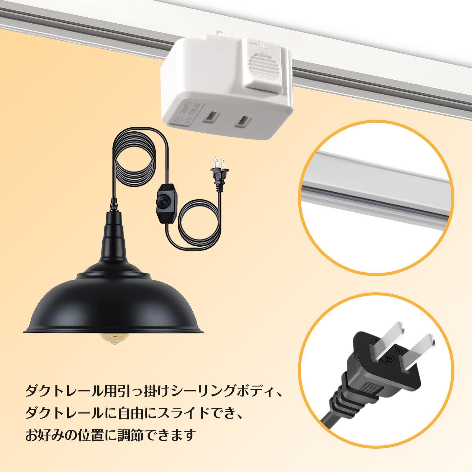 5. 応用:ライティングレールに取り付けて使用する引掛けシーリングプラグです。コード吊りペンダントライトやシーリングライトをライティングバーに装着する場合に適用します。