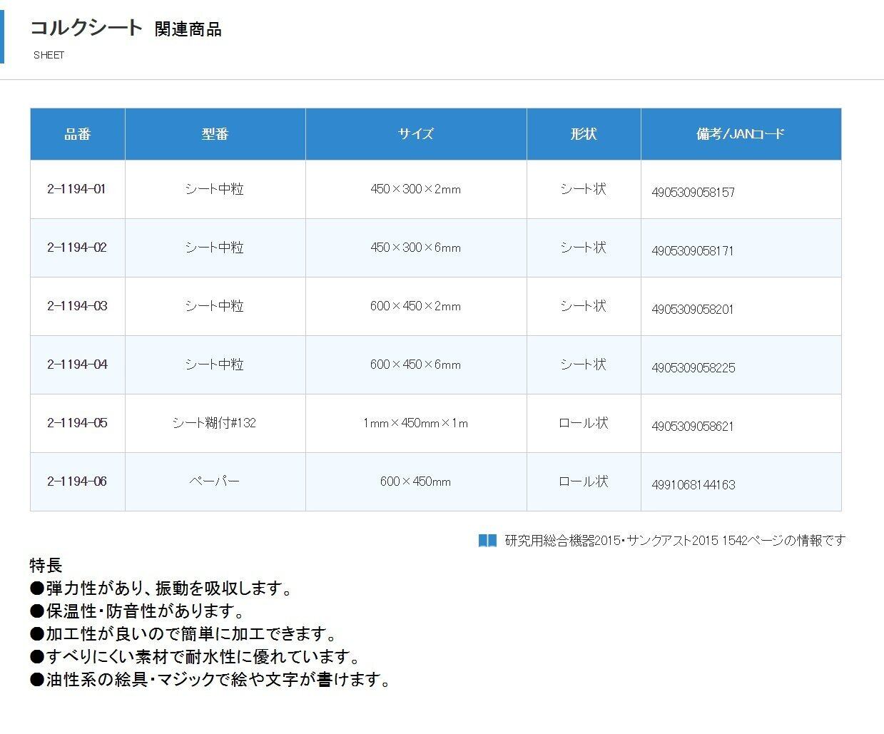 <br>●弾力性があり、振動を吸収します。<br>●保温性・防音性があります。<br>●加工性が良いので簡単に加工できます。<br>●すべりにくい素材で耐水性に優れています。<br>●油性系の絵具・マジックで絵や文字が書けます。