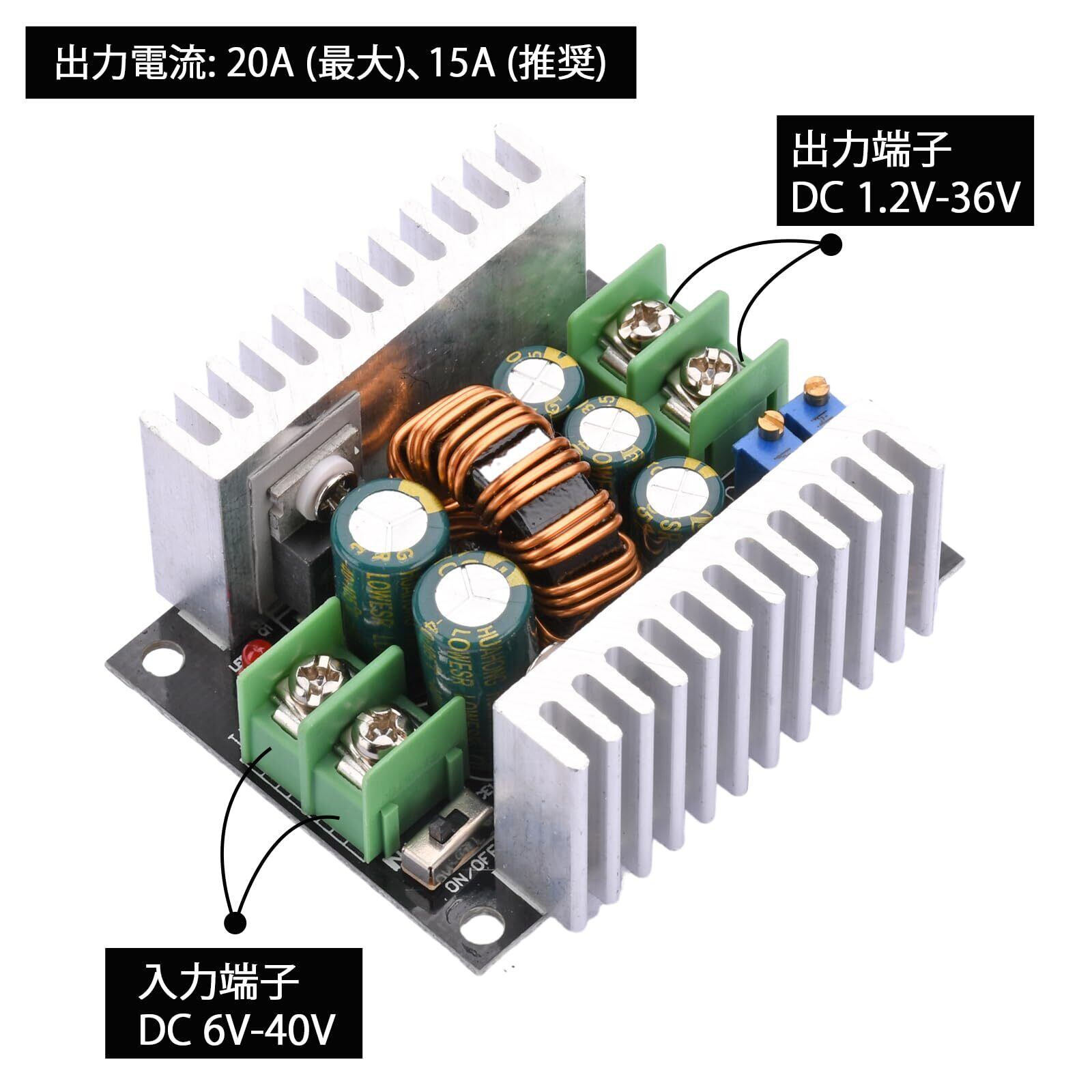 最大96%の変換効率】:AideepenのDC-DC 300W 20A降圧モジュール電源コンバータ。学校実験室での研究、産業回路の開発、日常の電気機器の使用に適しています。製品サイズは60 * 53 * 27 mm。