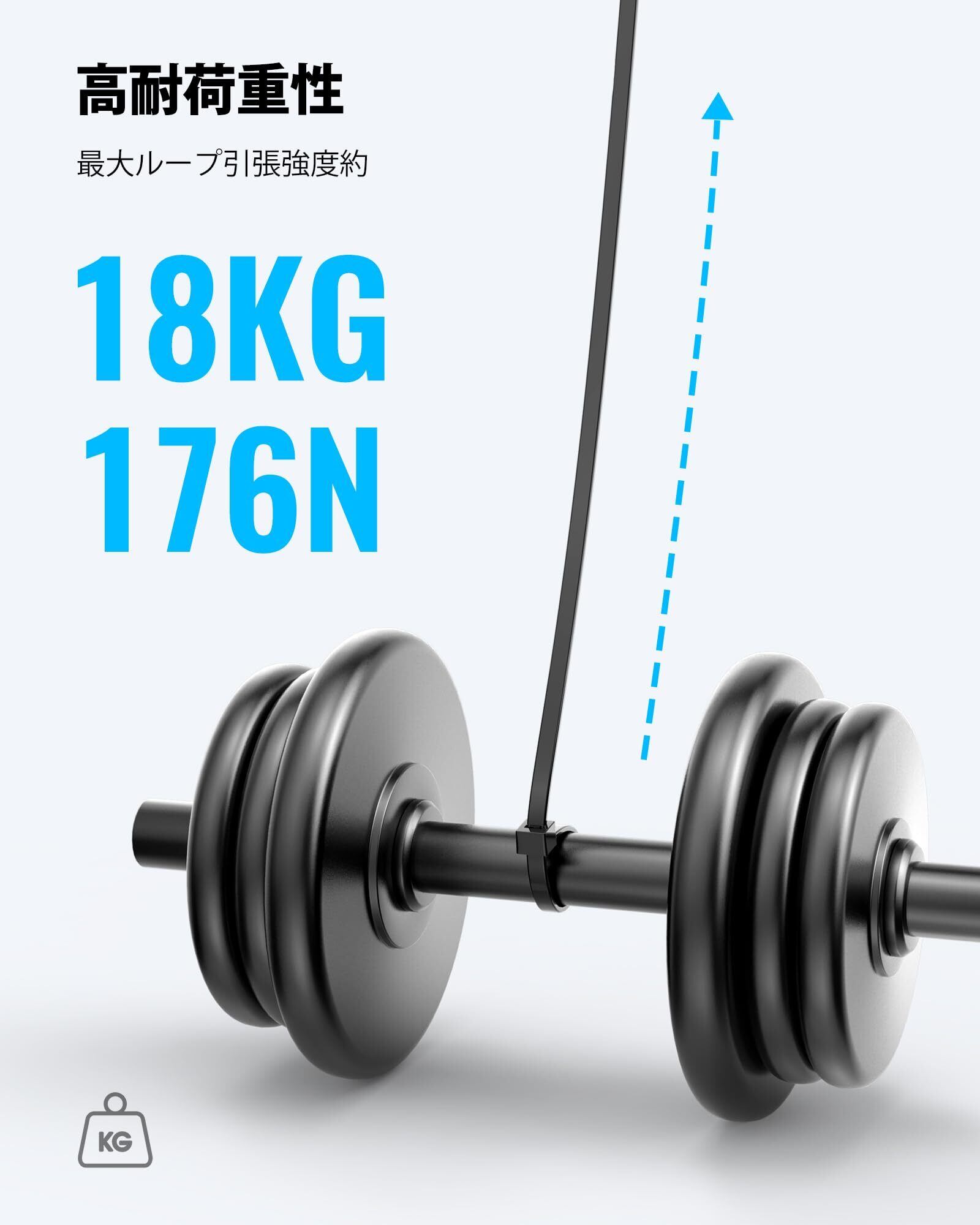 【高耐荷重性】 最大ループ引張強度約18kg(176N)で、トリプルセレーションにより引張強度が15%~30%アップ。従来の配線用結束バンドに比べ、柔軟性、耐久性、耐引裂性に優れています。バリがなく滑らかなバンドのエッジは、使いやすくて挟傷を防止して、指や体の他の部分を傷つけません。