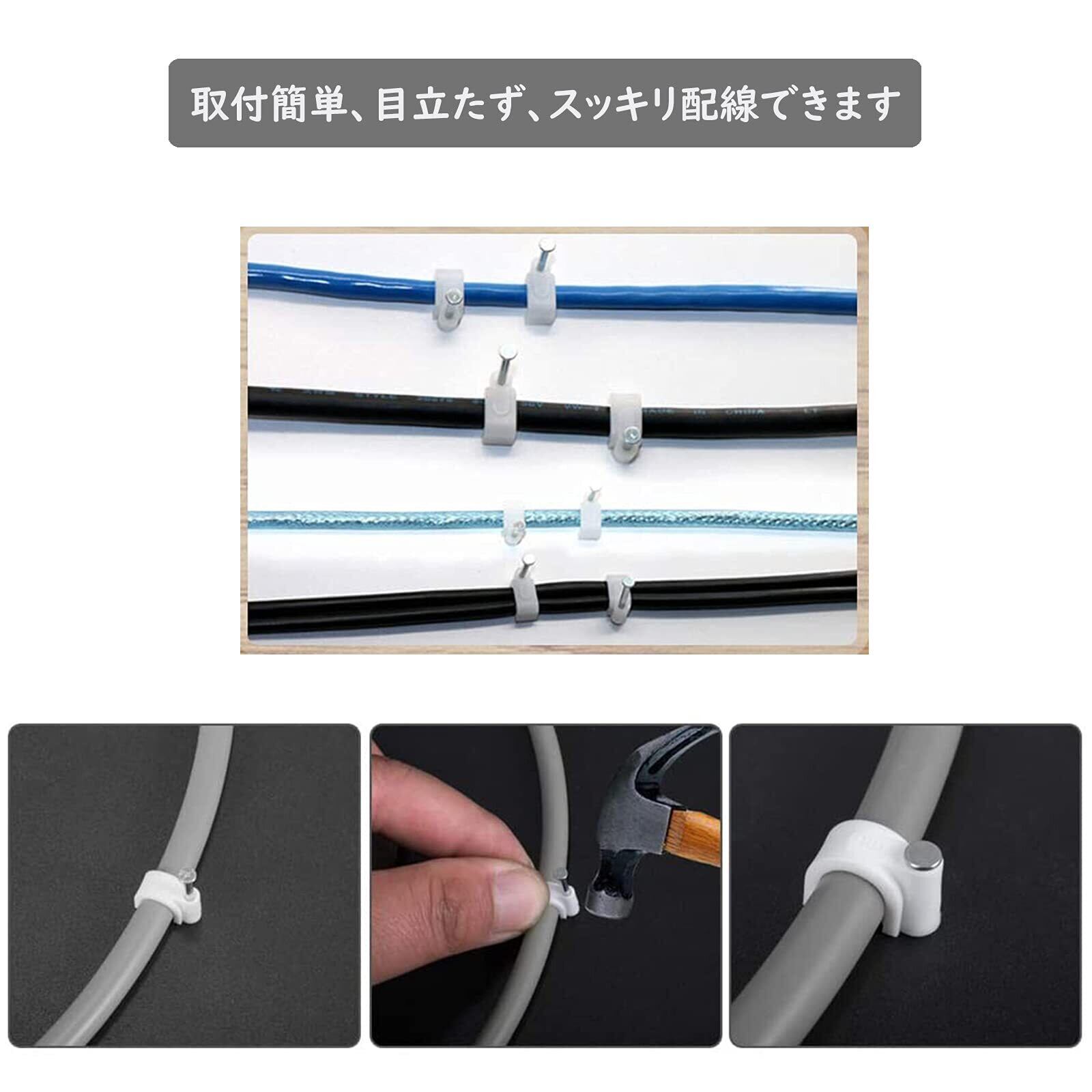 【新着商品】コードとめ具 壁 7mm 100個 ホワイトプラスチック ケーブルステップル LANケーブル用 釘止めタイプ 配線固定用