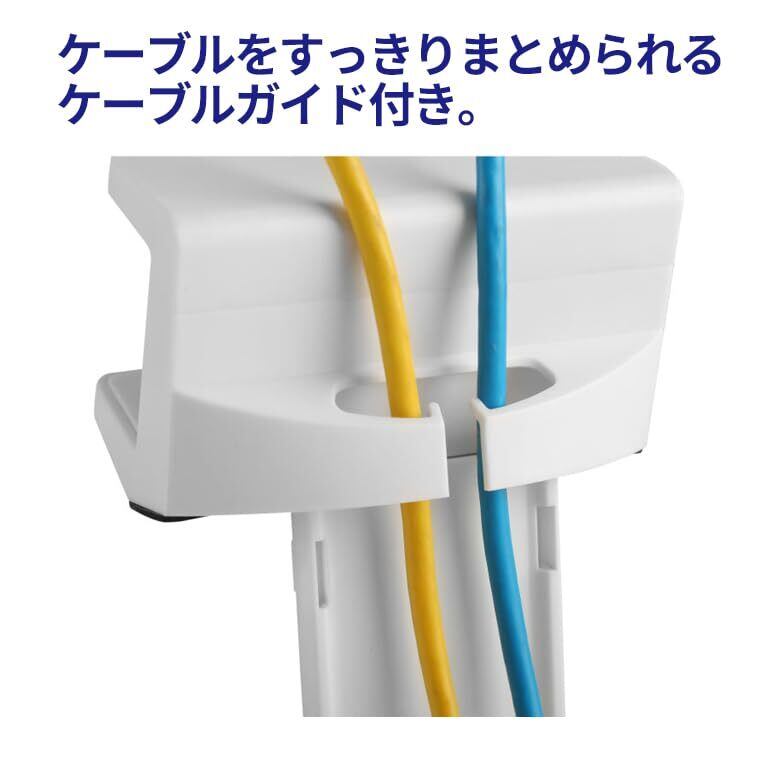 机や電源タップをキズつけない滑り止めパッド・ケーブルをまとめられるケーブルガイド付き。