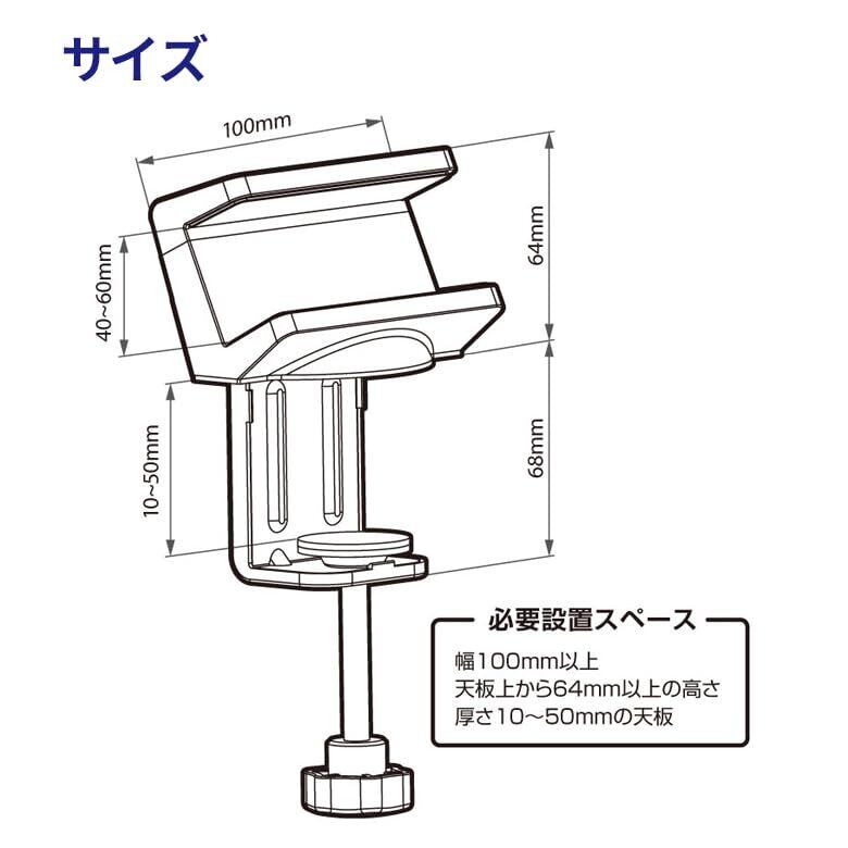 設置スペース:幅100mm以上、天板上から64mm以上の高さ、厚さ10~50mmの天板。
