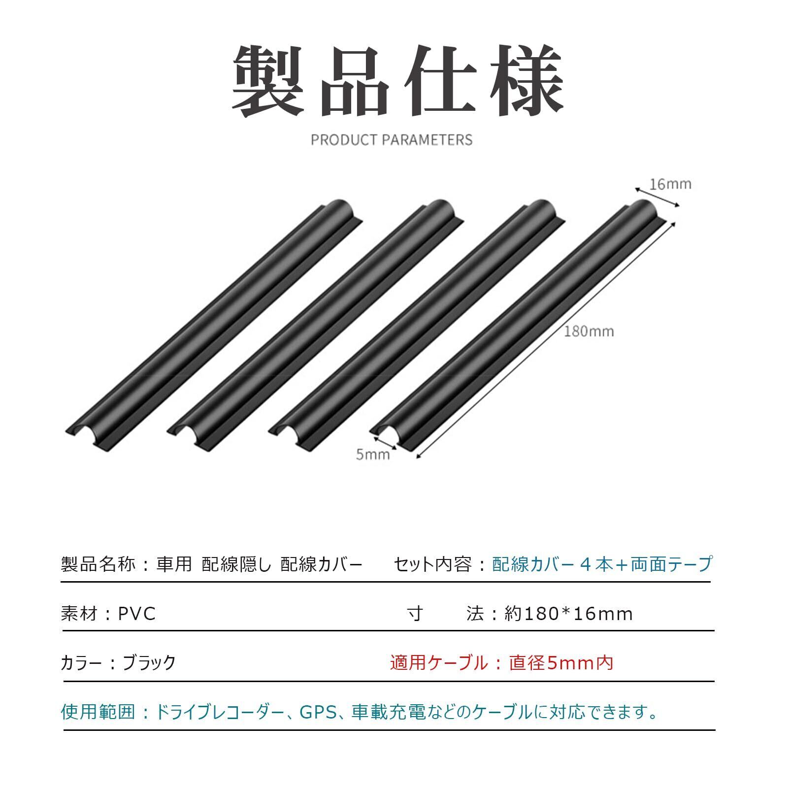 車用 配線隠し 配線カバー 目立たない 両面テープ 4本セット 約180mm 柔らかいPVC素材 カット可能 保護 便利 簡単 車内 整理 (BK 4本 約180mm)