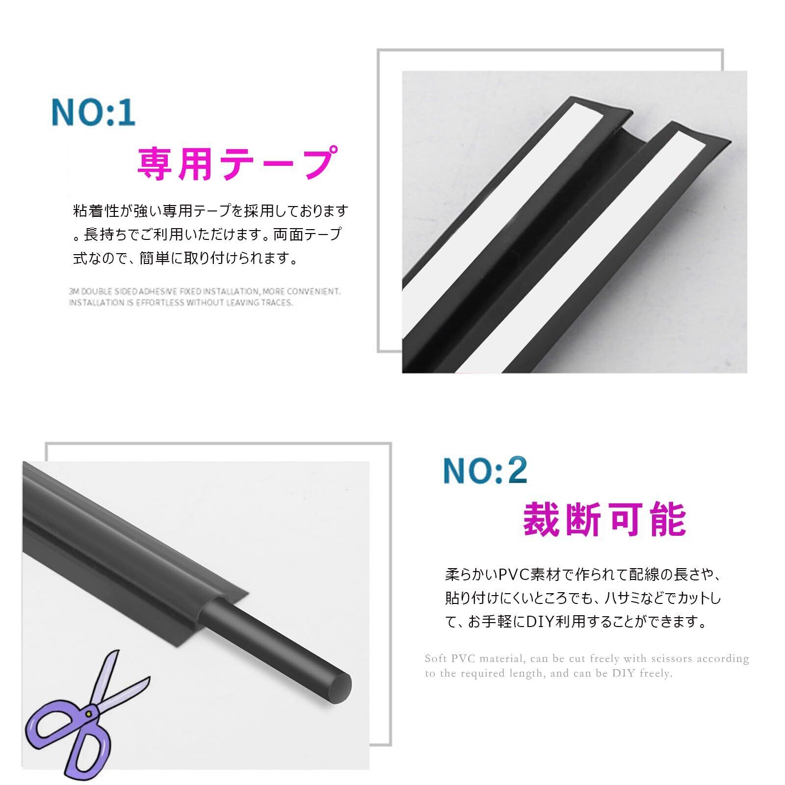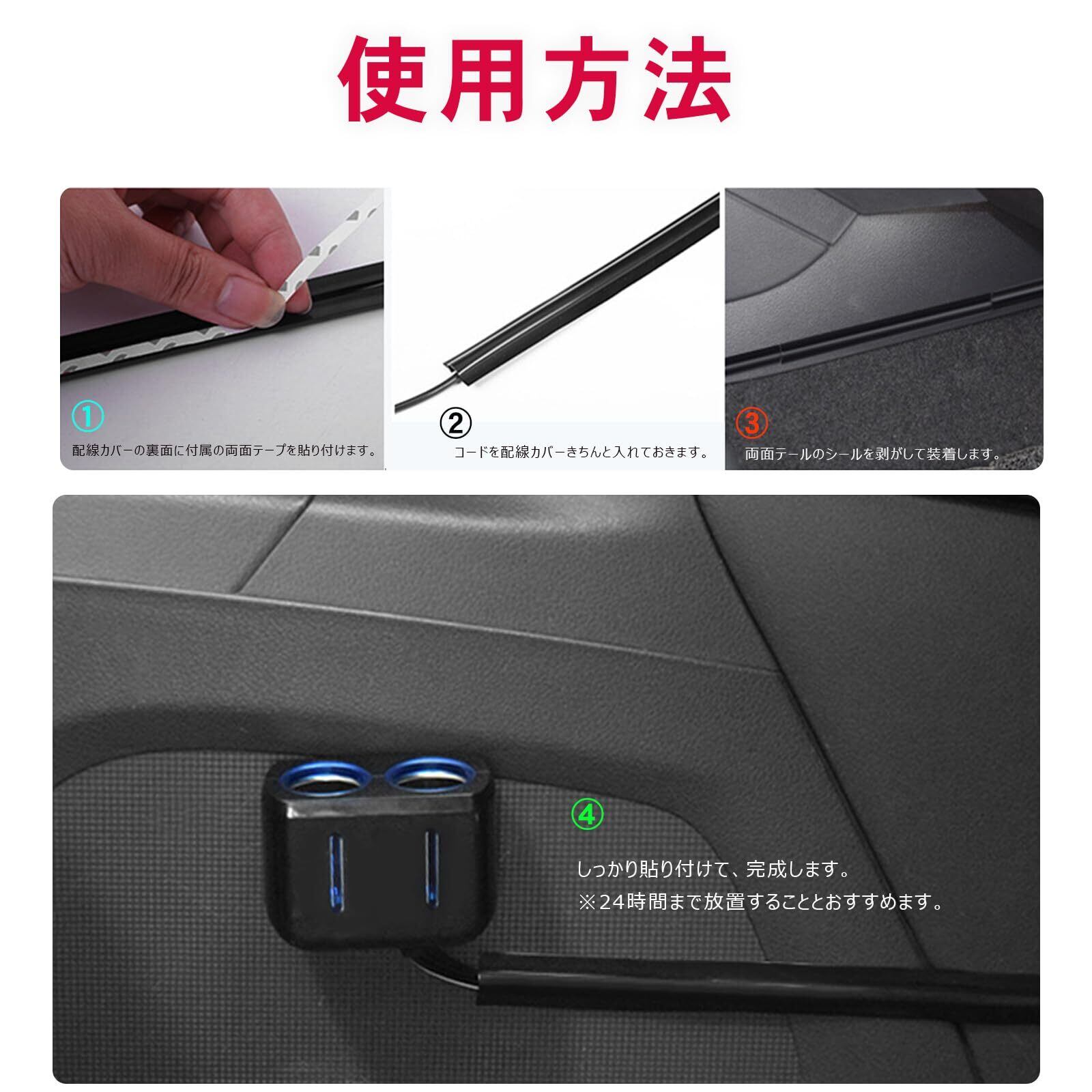 【使用簡単・便利】車用 配線カバーの裏面に付属の両面テープを貼り付けて、取り付けたいところにつけるだけで、すぐ利用することができます。