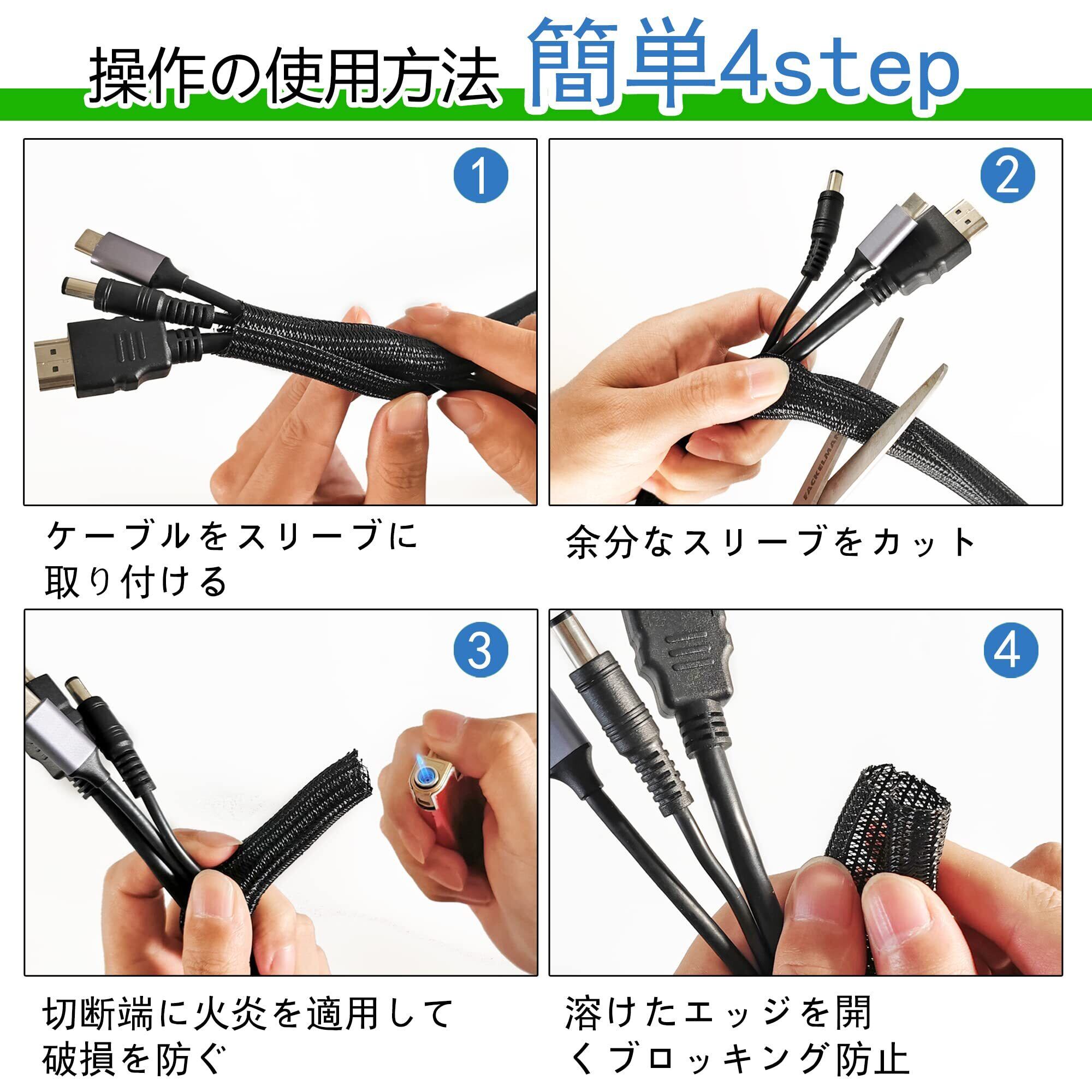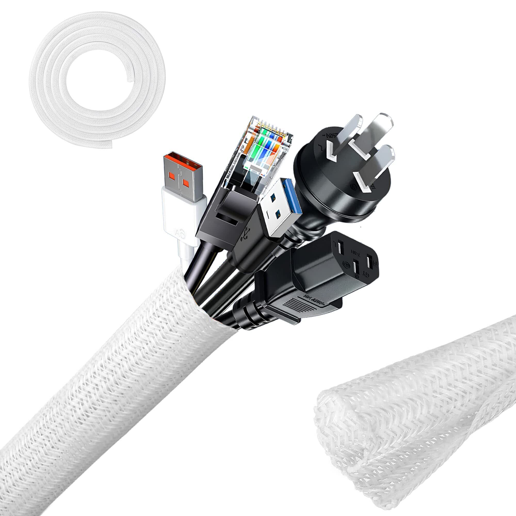 【2025最新】配線カバー 編組ケーブルスリーブ 全長3m 内径13mm DIY切断可能 PET素材 耐高温絶縁 ペットコード噛み防止 家庭・オフィス用ケーブル収納 (白)