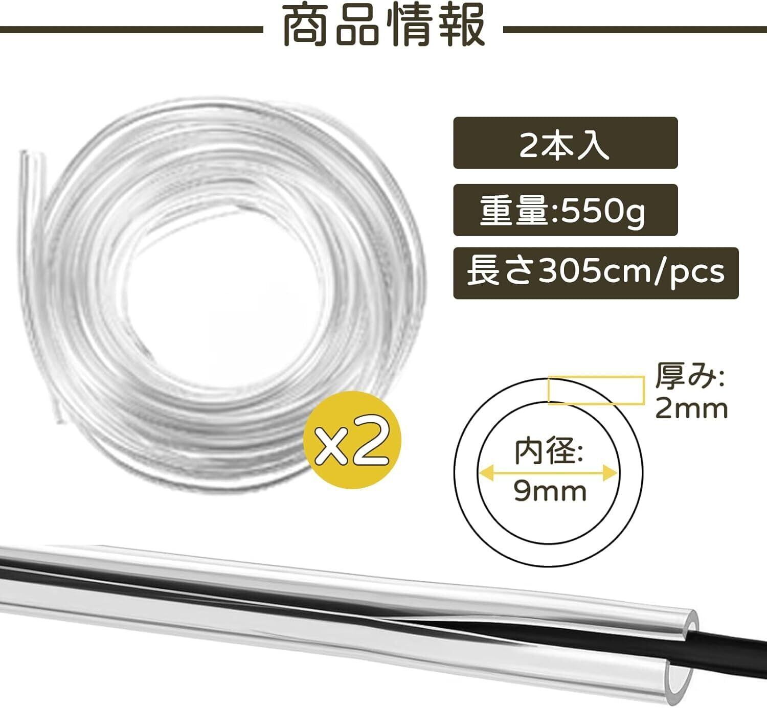 【厚み2mm】本ペットワイヤプロテクターは噛み防止目的でやや硬めのPVC素材から作られます。内径9mmで、長さ305cm/pcsの保護コード2本セットは合計610cmです。充電コードの他、電源コード、プリンタケーブル、TVケーブルなど、ほとんどの家庭用ケーブルに対応できます。