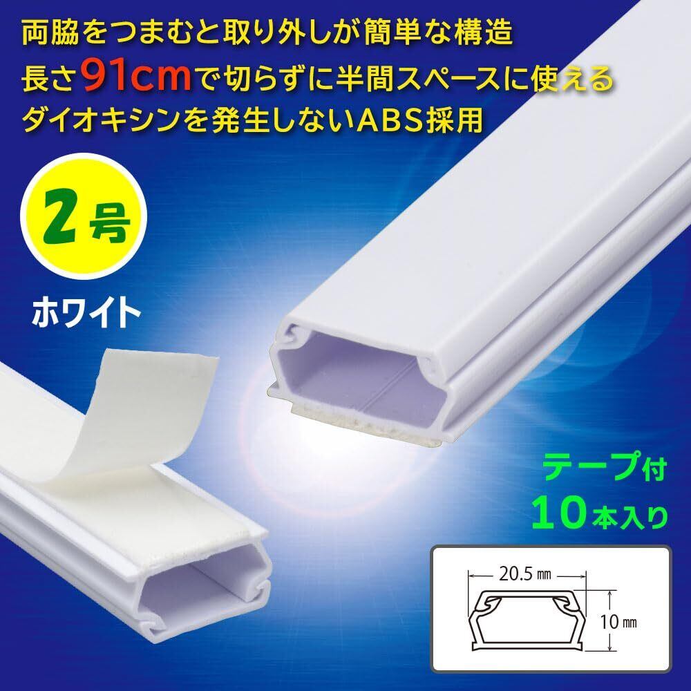 オーム(OHM) テープ付ABSモール 2号 91cm ホワイト 10本入|オーム電機 DZ-AMT209-W/10P 09-2838