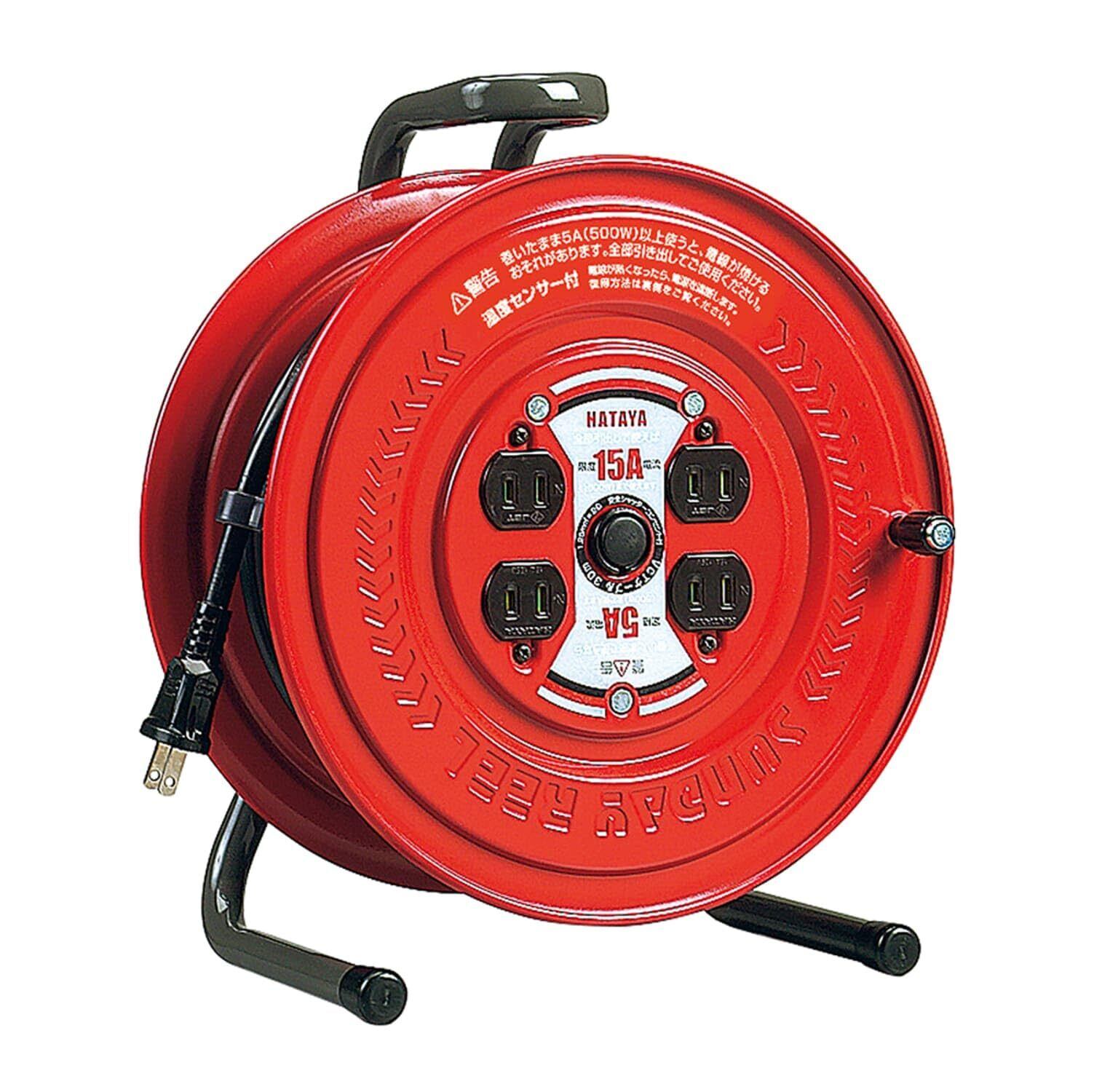 ハタヤ (HATAYA) コードリール 屋内用 100V型 コード30m 太さ1.25㎟ 標準型 温度センサー内蔵 (電線溶解防止機能) コンセント4個 コンセント防塵シャッター 前面フラットパネル 家庭用 工場用 建設現場 サンデーリール S-30S