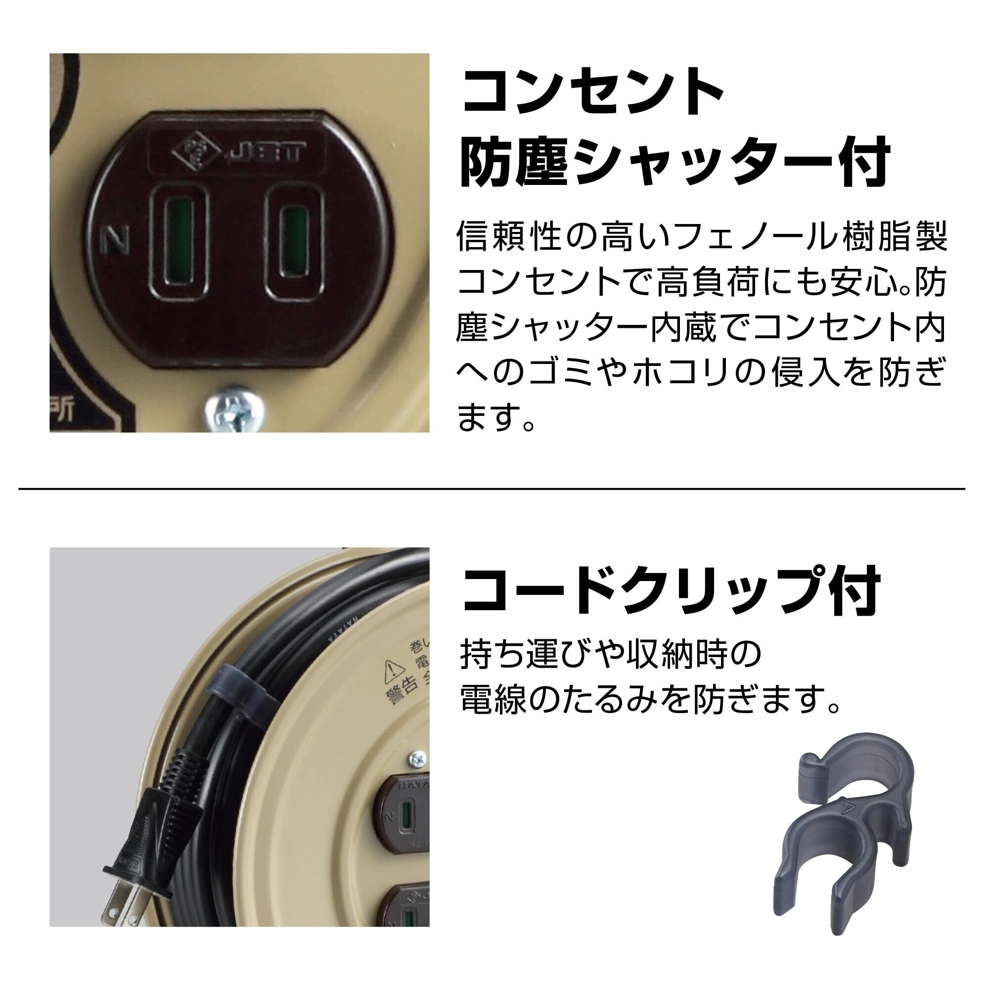 ハタヤ (HATAYA) コードリール 15m 2P 4個口コンセント 125V 15A 防塵シャッター付き 工場 アウトドア レジャー キャンプ JY-151