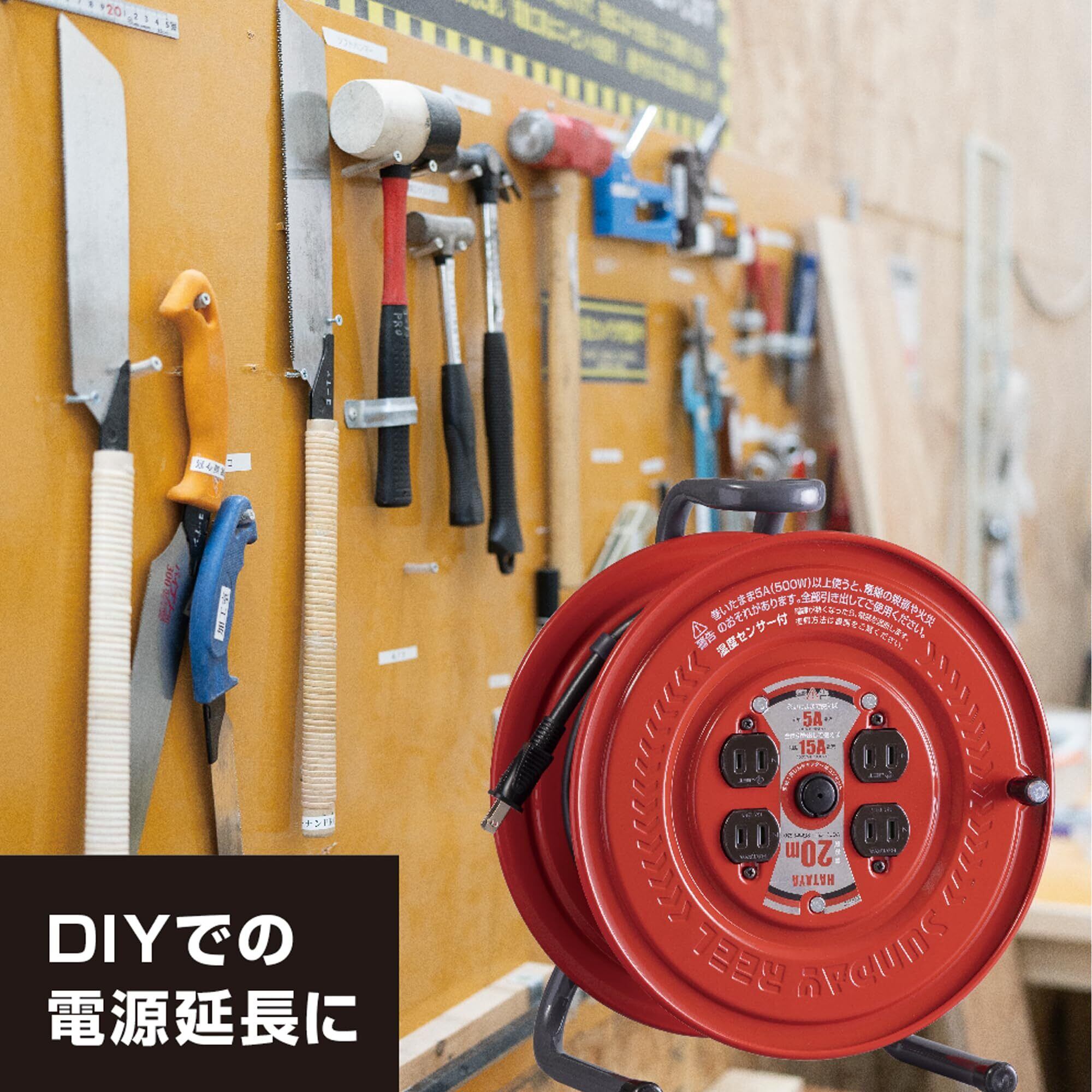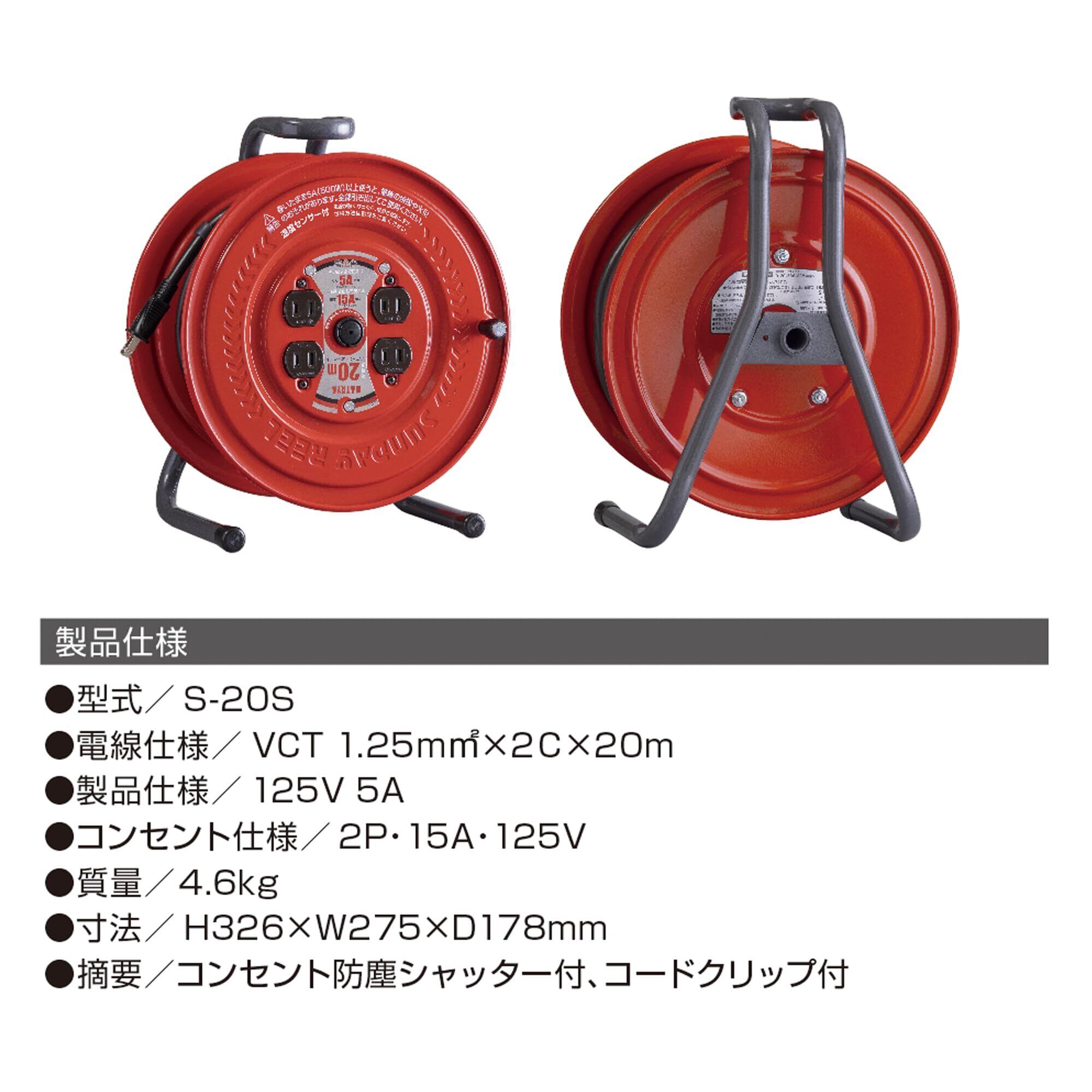 【人気商品】ハタヤ (HATAYA) コードリール 屋内用 100V型 コード20m 太さ1.25㎟ 標準型 温度センサー内蔵 (電線溶解防止機能) コンセント4個 コンセント防塵シャッター 前面フラットパネル 家庭用 工場用 建設現場 サンデーリール S-20S