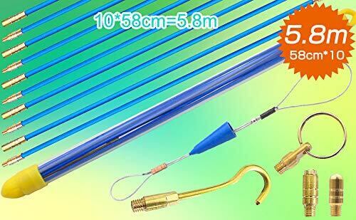 通線ワイヤー 配線通し 58cm×10本 入線呼線工事専用ワイヤー 先端金具 収納ケース付 5.8m 藍