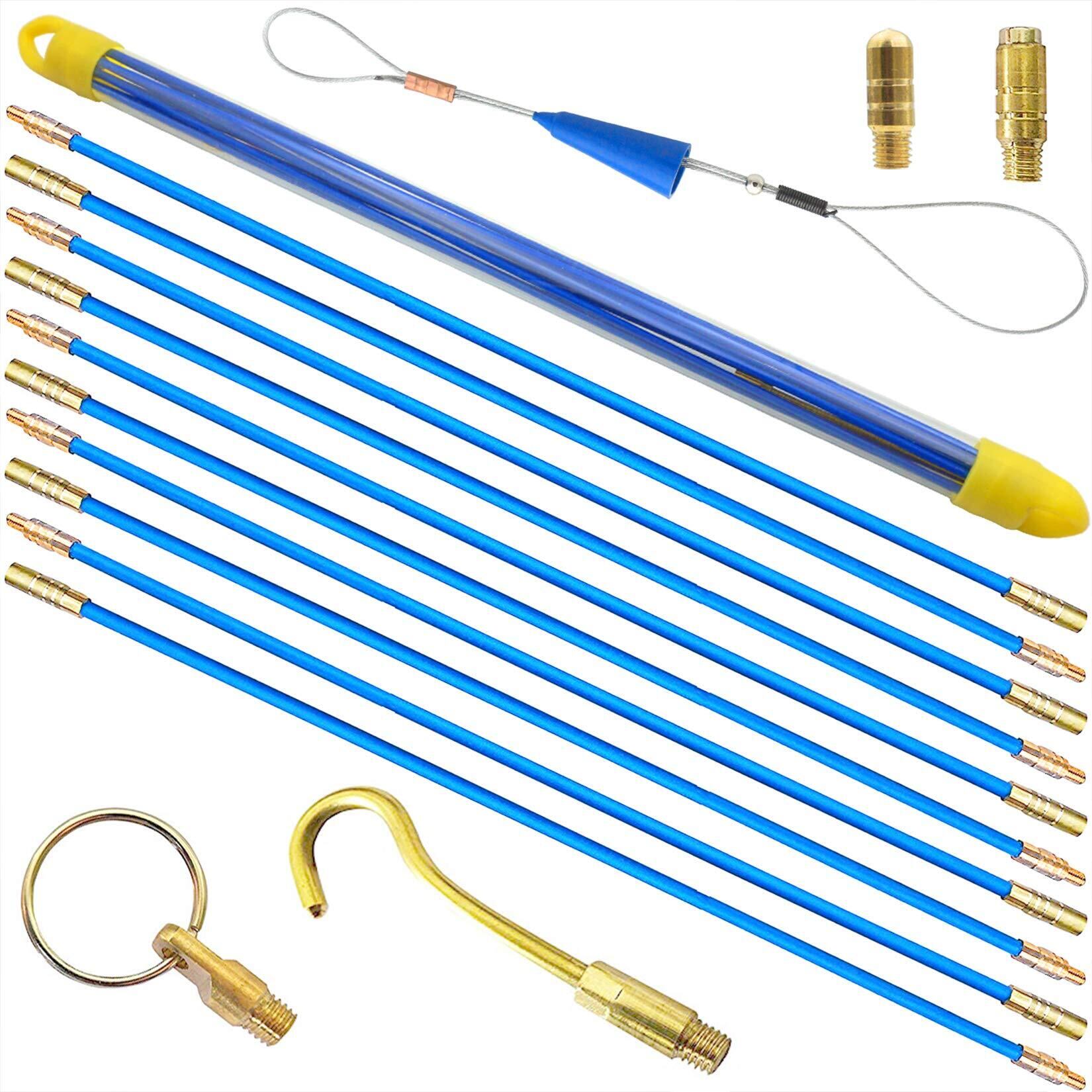 【省力化 威力爆発】-ネジ付き真鍮接続付きの10本のロッドが含まれています。通線収納ケース、付属先端金具付、便利なセットです。取扱いが容易。