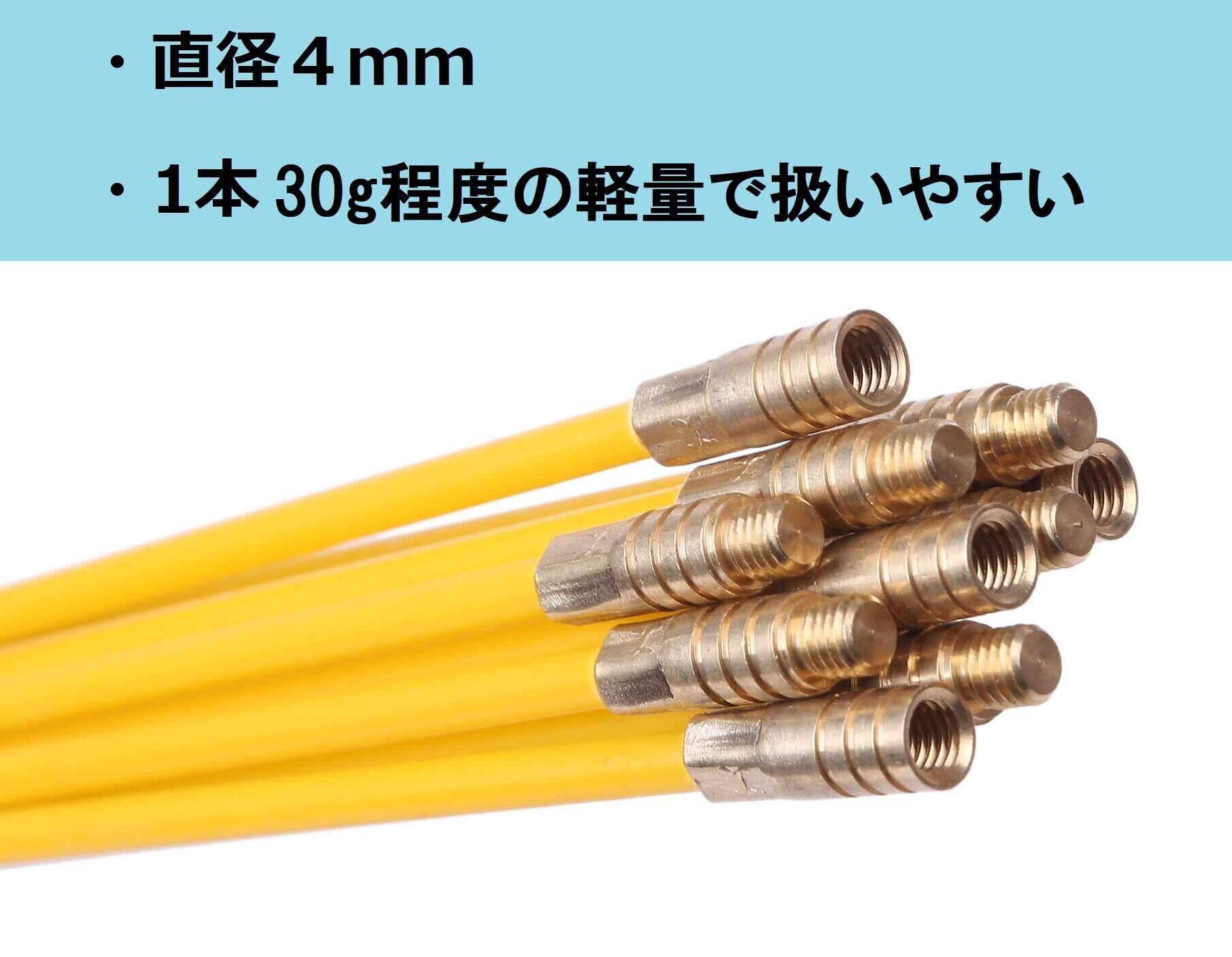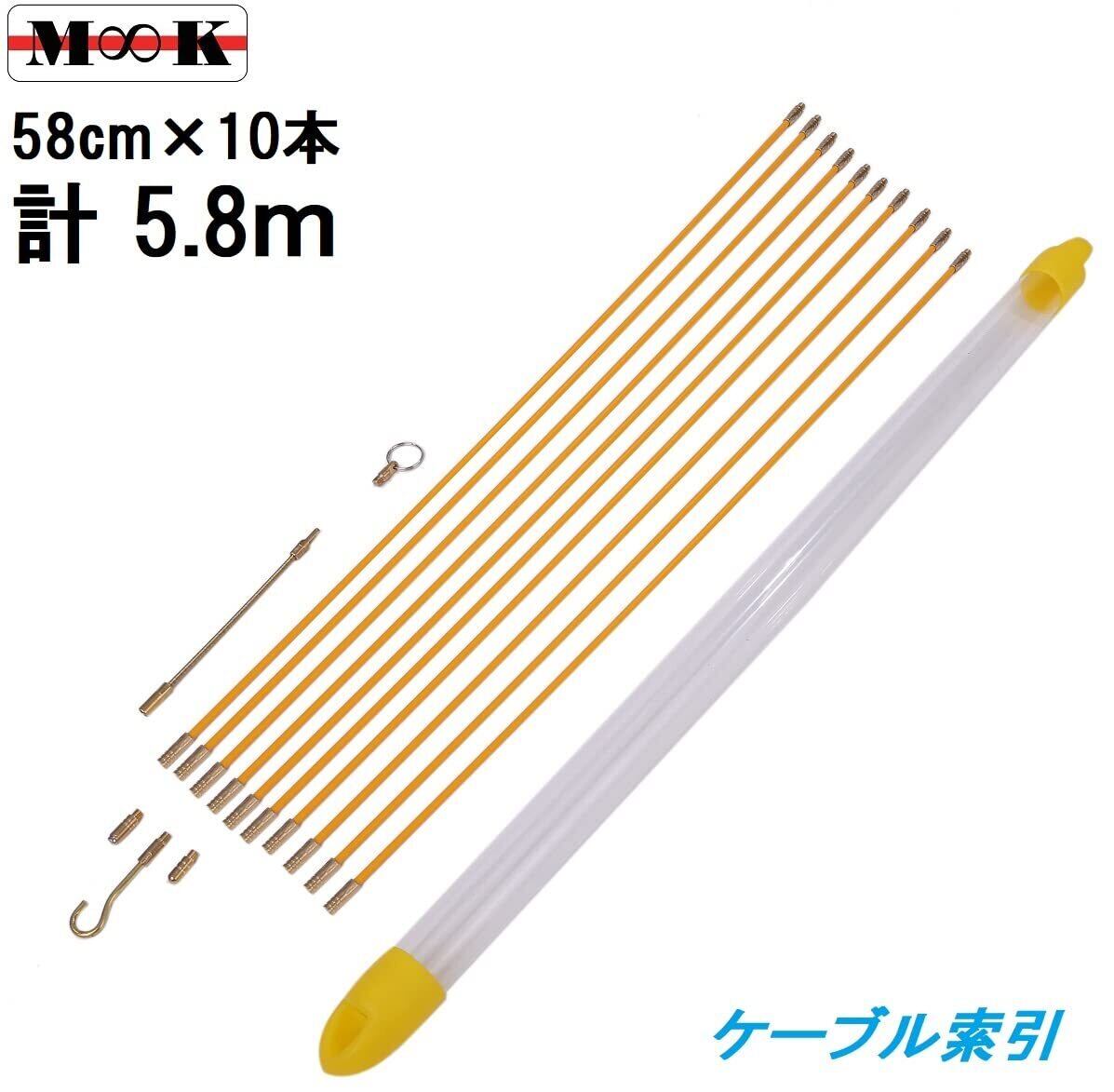 通線ワイヤー 58cm×10本 ケーブル索引具 入線工事用ロッド 配線通し 通線収納ケース付 先端アタッチメント付属 MK-080 (1個10本セット)