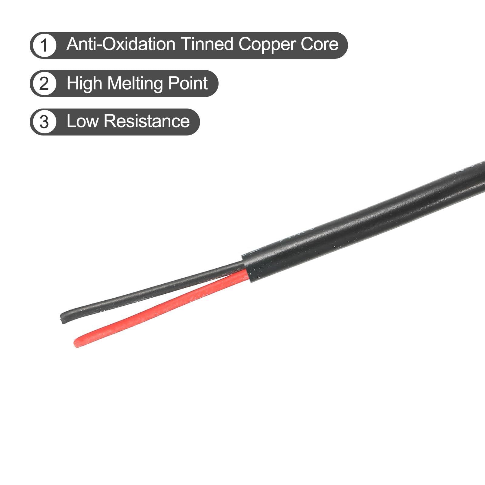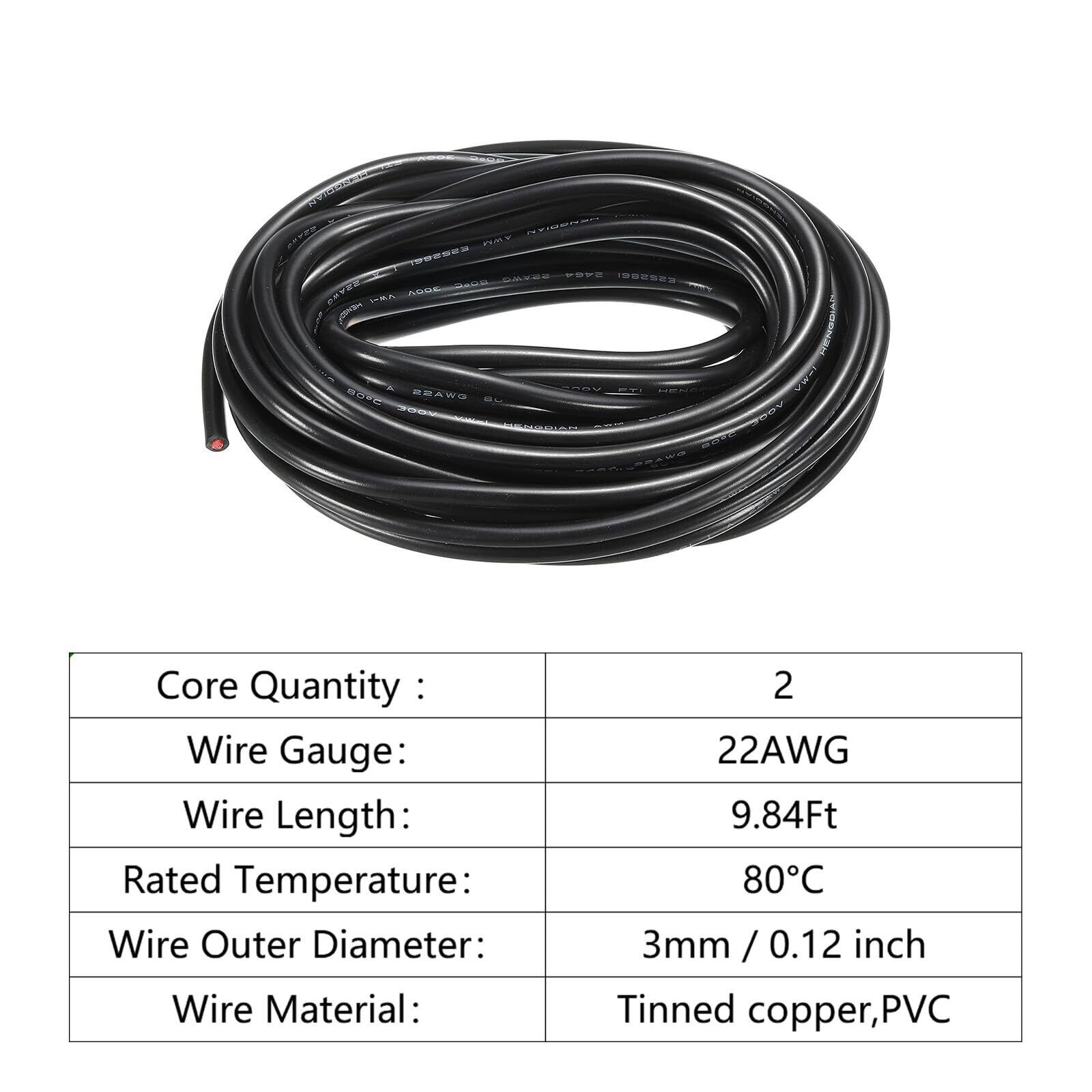 uxcell 電線ケーブル 22A WG電線 2芯 UL2464 LED電源照明ケーブル 錫メッキ銅 3 m 低電圧 PVCケース 配線 絶縁 延長電源コード 交換 修理 リード線 LEDストリップランプ照明用 黒