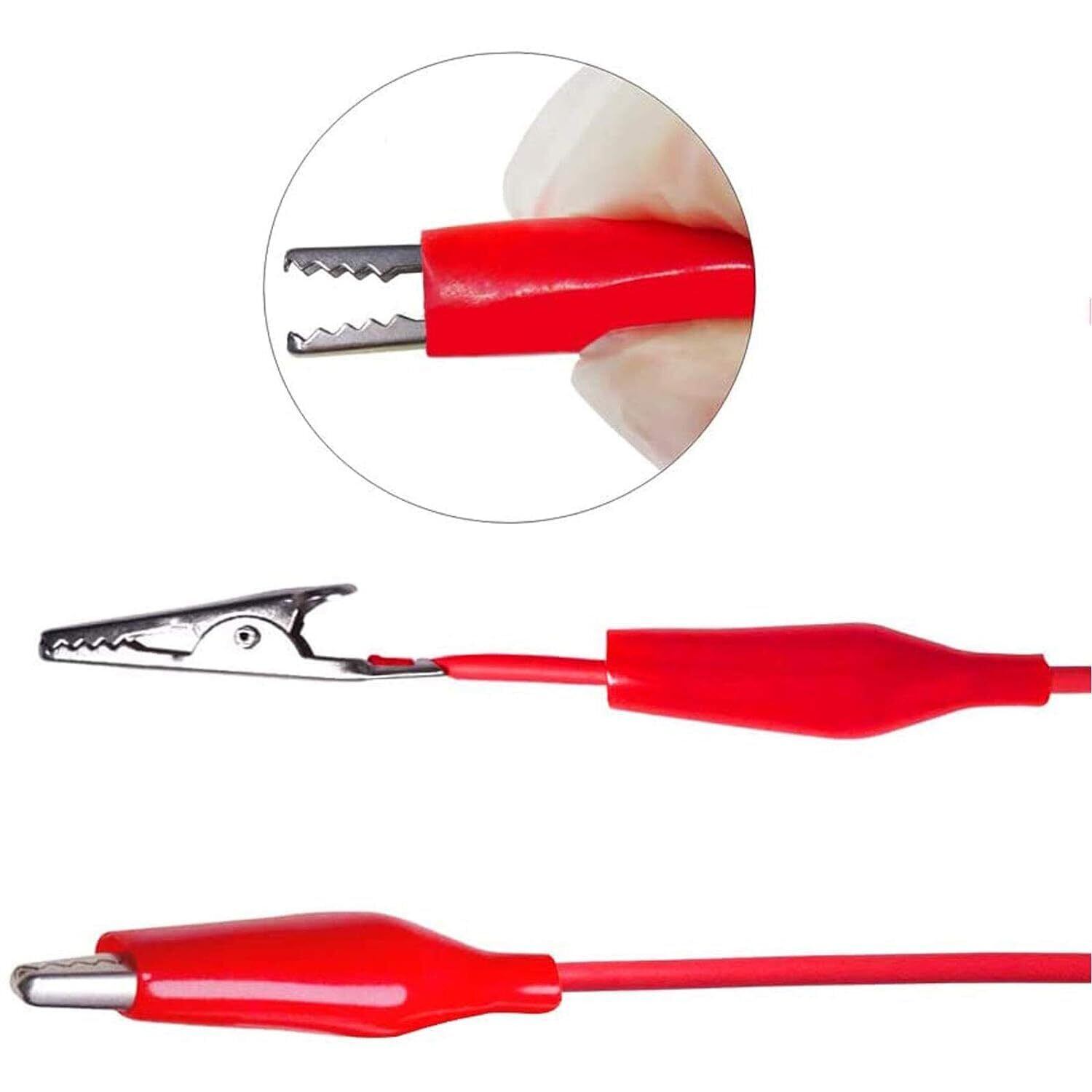 【電気伝導性】低抵抗および高感度を提供するワイヤにはんだ付けおよびスタンピングされたワニ口クリップ、ワイヤ直径2mm、内部領域0.5mm、ワイヤゲージ22 AWG
