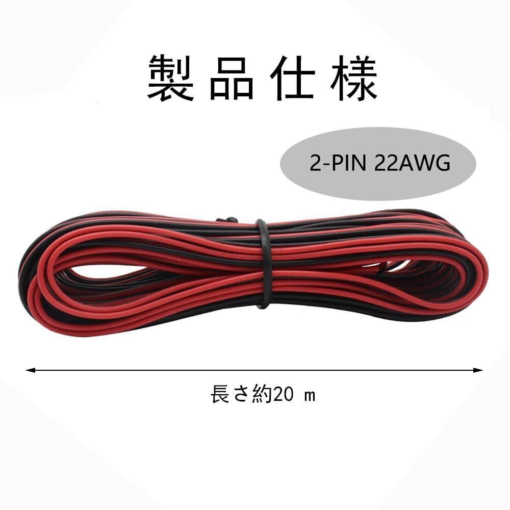 配線 電線 配線コード AWG22 2芯 延長コード 赤黒 LEDストリップライト 電子工作 交換 修理 リード線 延長用 電化製品(20m)