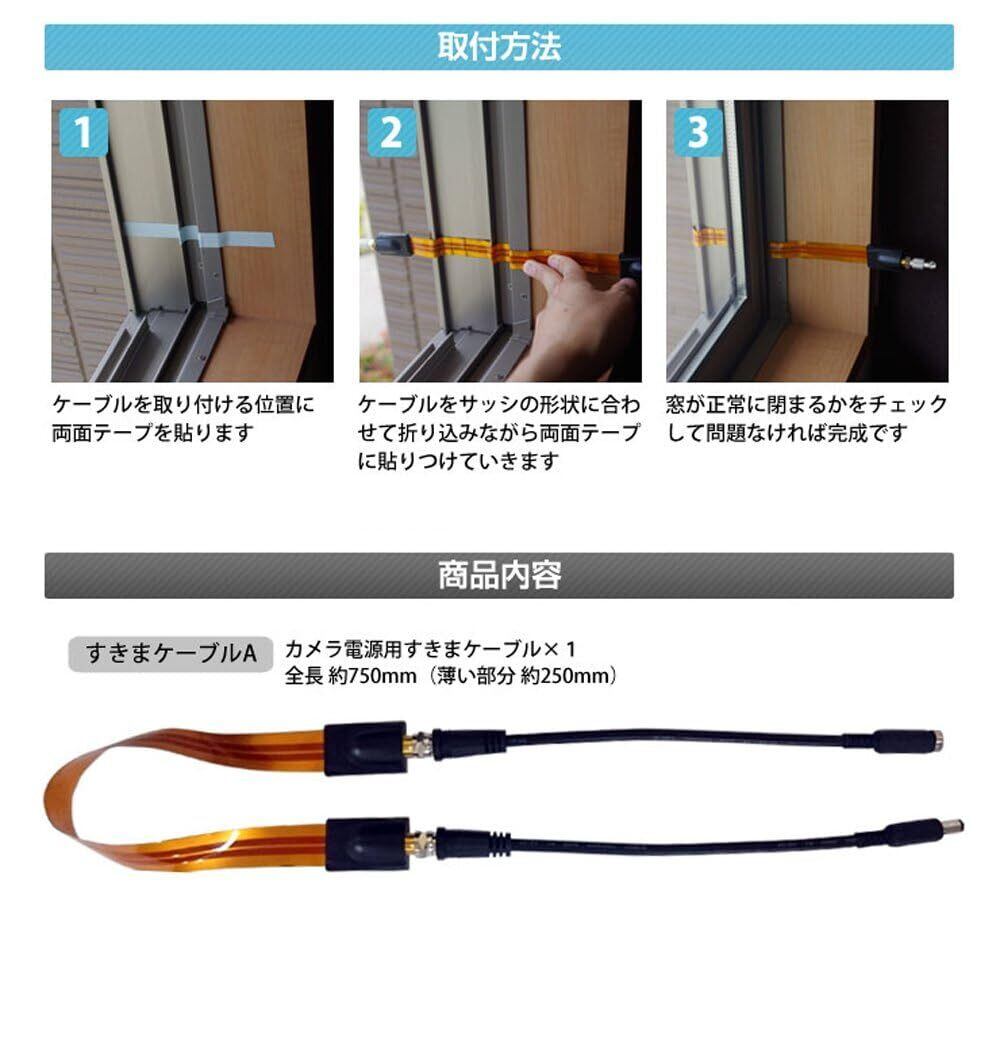 隙間ケーブル 防犯カメラ用 工事不要 0.25mm超薄 フラットケーブル DC5.5x2.1mm専用 延長コード付属 サッシ/ドア隙間対応 すきま忍者 32cm+23.6cmx2本セット