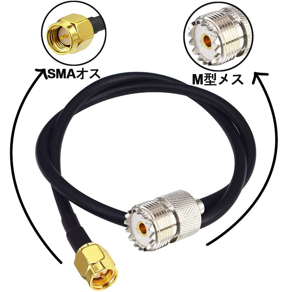 【新着商品】M型-SMA型ケーブル RG58 50cm 変換コネクタケーブル MJ-SMAP コネクター UHFメス-SMAオス 純銅ケーブル 高耐久 ハンディ機用 アンテナ延長線 同軸ケーブル