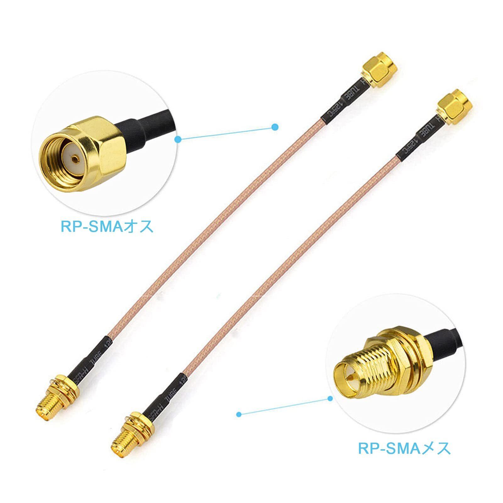 BINGFU RP-SMAアンテナケーブル RPSMA オス⇔メス 同軸ケーブル 延長ケーブル 低損失 15cm 2本入