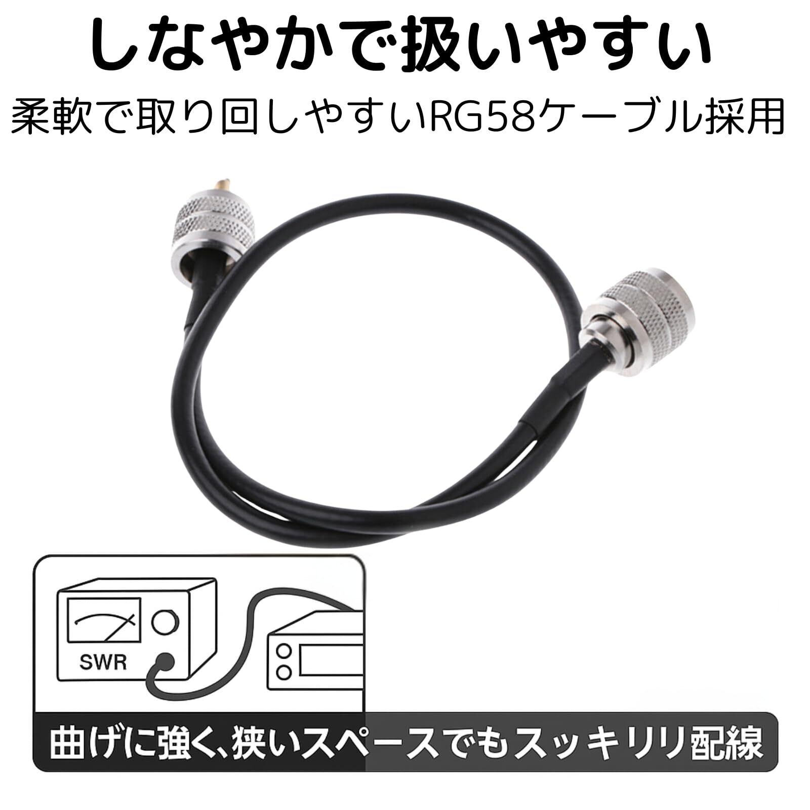 【M型オス-オス 中継ケーブル】無線機器やSWR計、アンプなどの接続に最適なRG58同軸ケーブル(長さ:50cm)