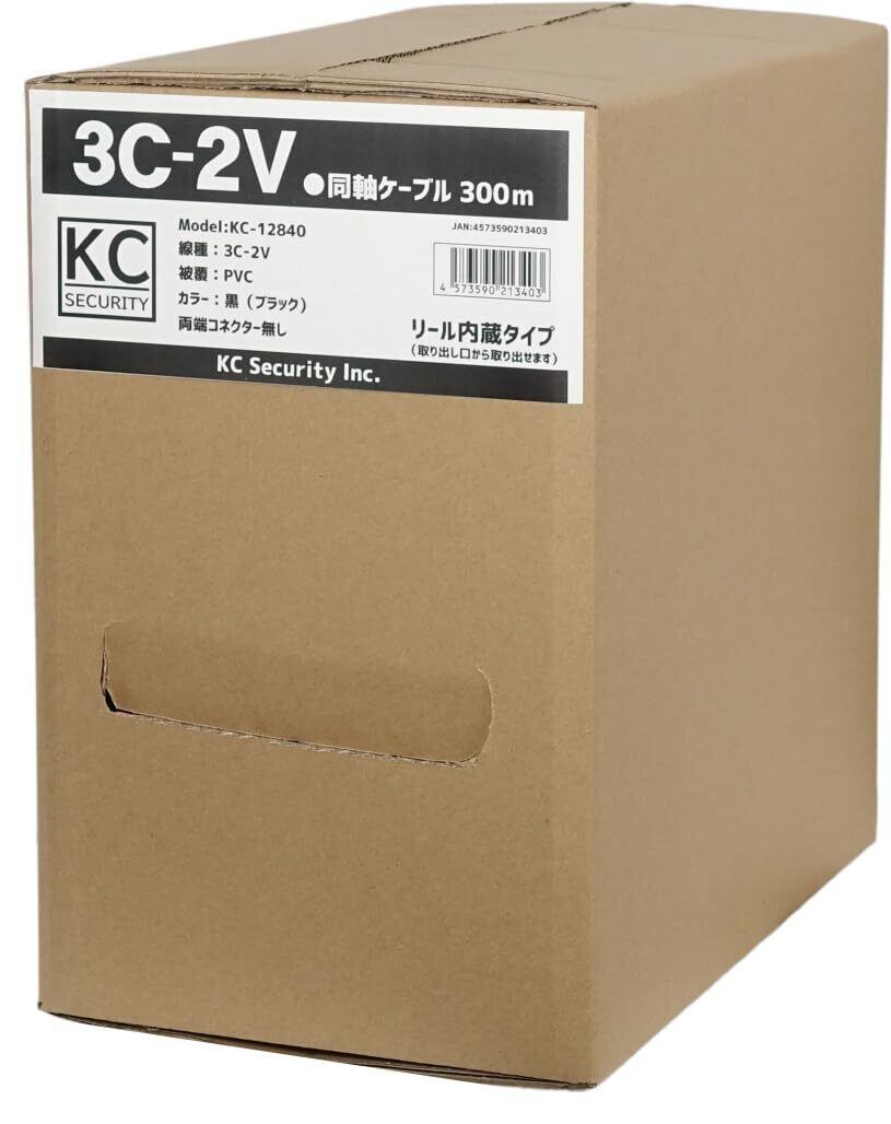 300m 3C2V 同軸ケーブル リール巻(コネクター無) 防犯カメラ、監視カメラの映像ケーブルに 3C-2V 同軸ケーブル 映像線 AHD,TVI,アナログCVBS信号に対応 外径:5mm 黒 KC-12840