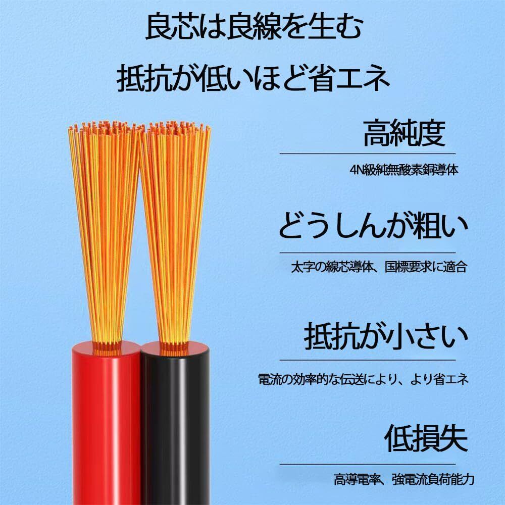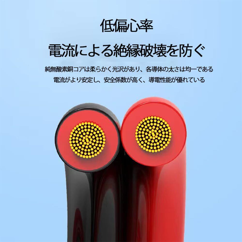3【安全性高い】絶縁電線の上に外装がカバーされていることから、安全性も耐久性も高いのが大きな特徴です。ブラックとレッドの2本のケーブルを組み合したタイプ、接続や延長に最適です。