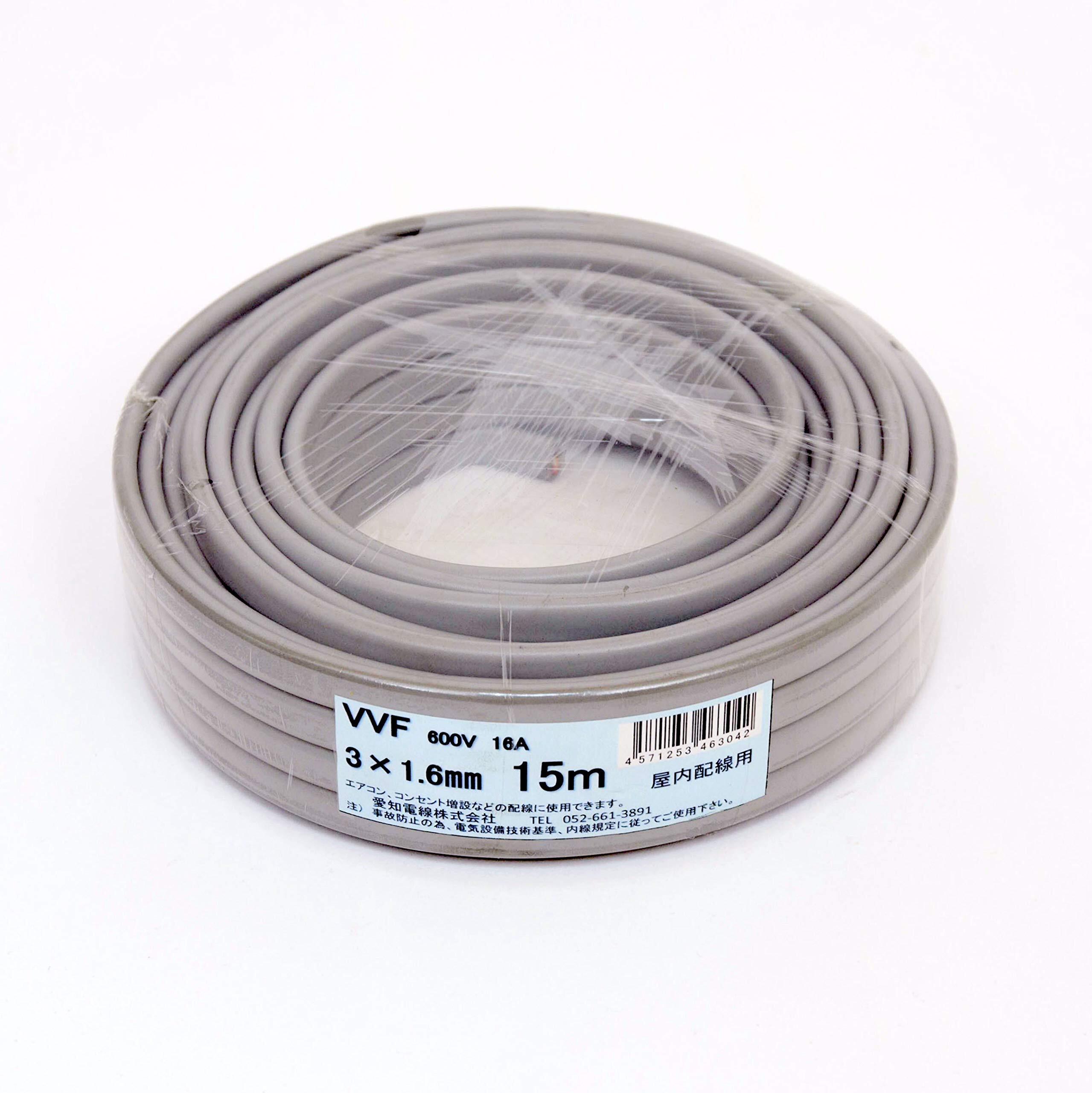 愛知電線 VVF ケーブル3芯 1.6mm 15m 灰色 VVF3×1.6M15