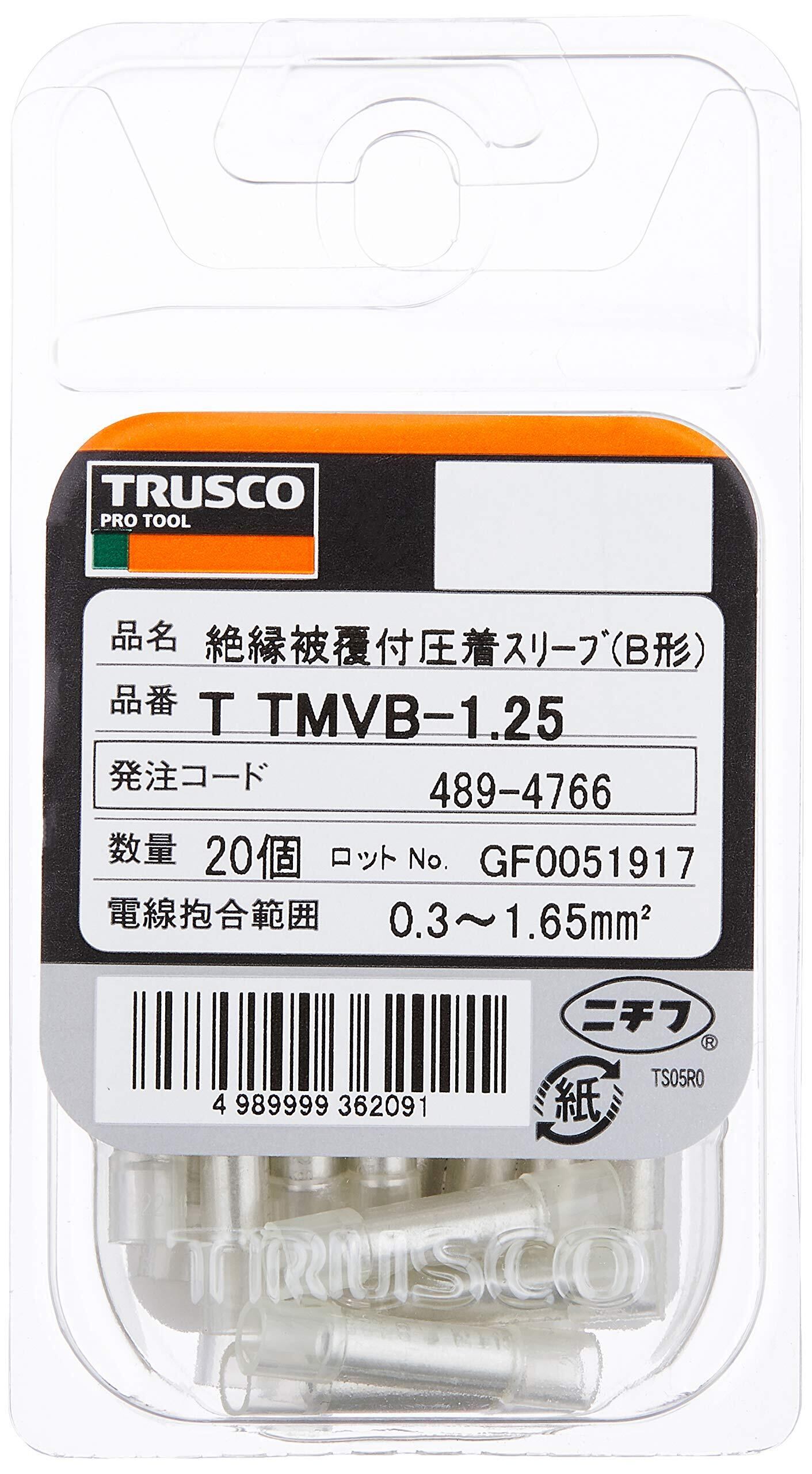 TRUSCO(トラスコ) 絶縁被覆付圧着スリーブ 突き合わせ用 B形 (20個入) T-TMVB-1.25