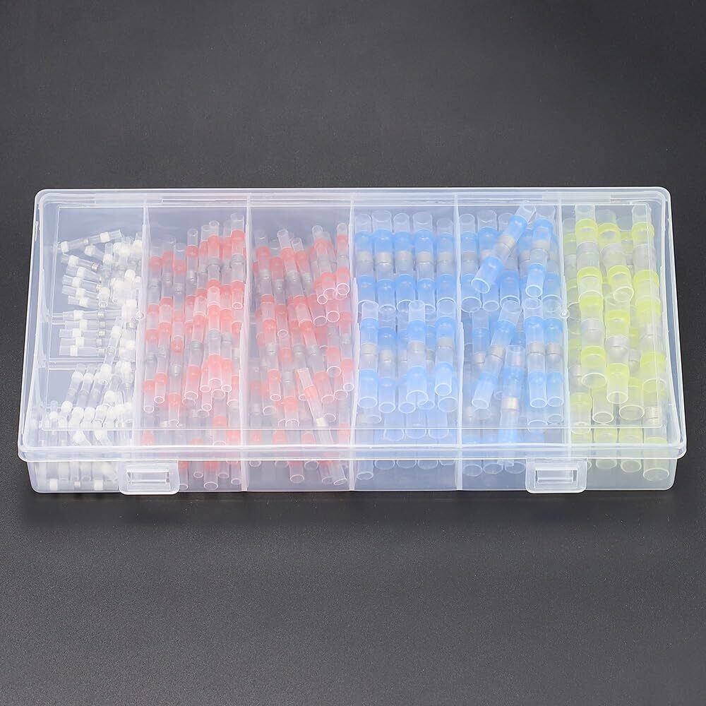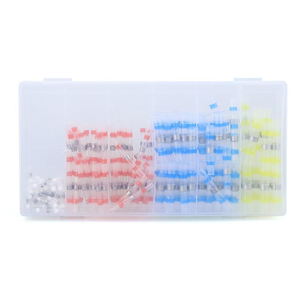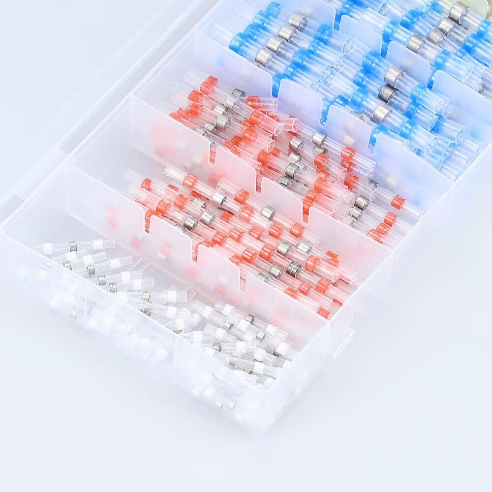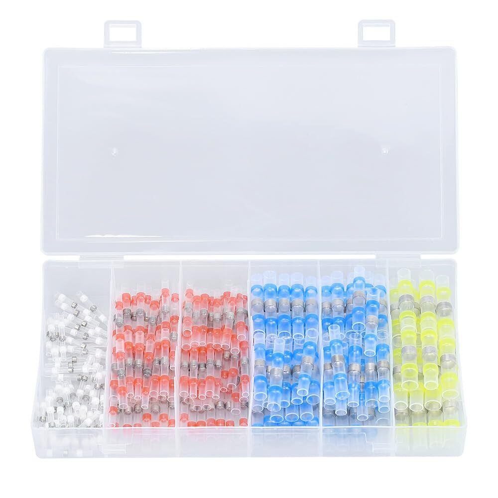 Glvaner 熱収縮はんだスリーブ 熱収縮チューブ 防水圧着スリーブ 圧着スリーブ はんだシールワイヤコネクタ 4種類 200個セット 接続端子 配線 接続 細線 自動車、オートバイなどに適用 収納ケース付き