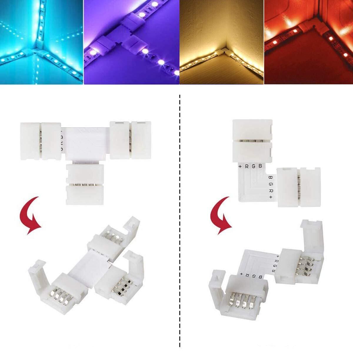 LEDストリップライトコネクタ 4ピン 10mm幅のSMD 5050 RGB LED テープライトコネクタ ledテープ 延長用ケーブル 2分岐接続 ケーブル 耐高温性 耐久性1