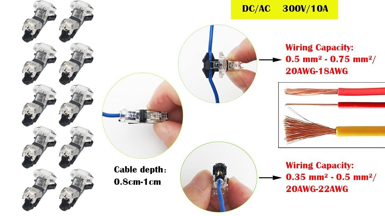 CTRICALVER 1ピンT型配線コネクター 配線分岐コネクター 簡単に速く配線取り付け 分岐 配線 接続 細線 【10個セット】