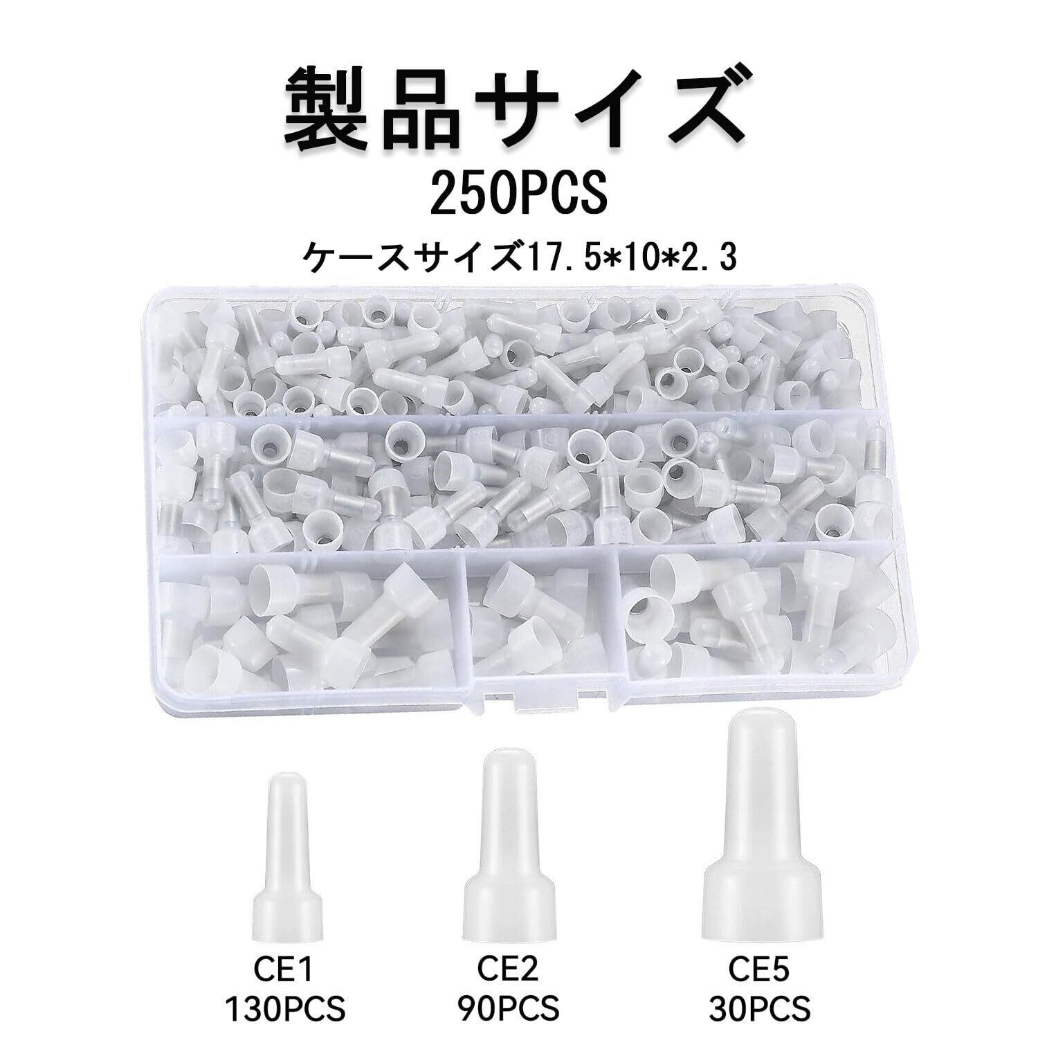【パッケージ内容】CE-1サイズが130個、CE-2サイズが90個、CE-5サイズが30個の合計250個入り。