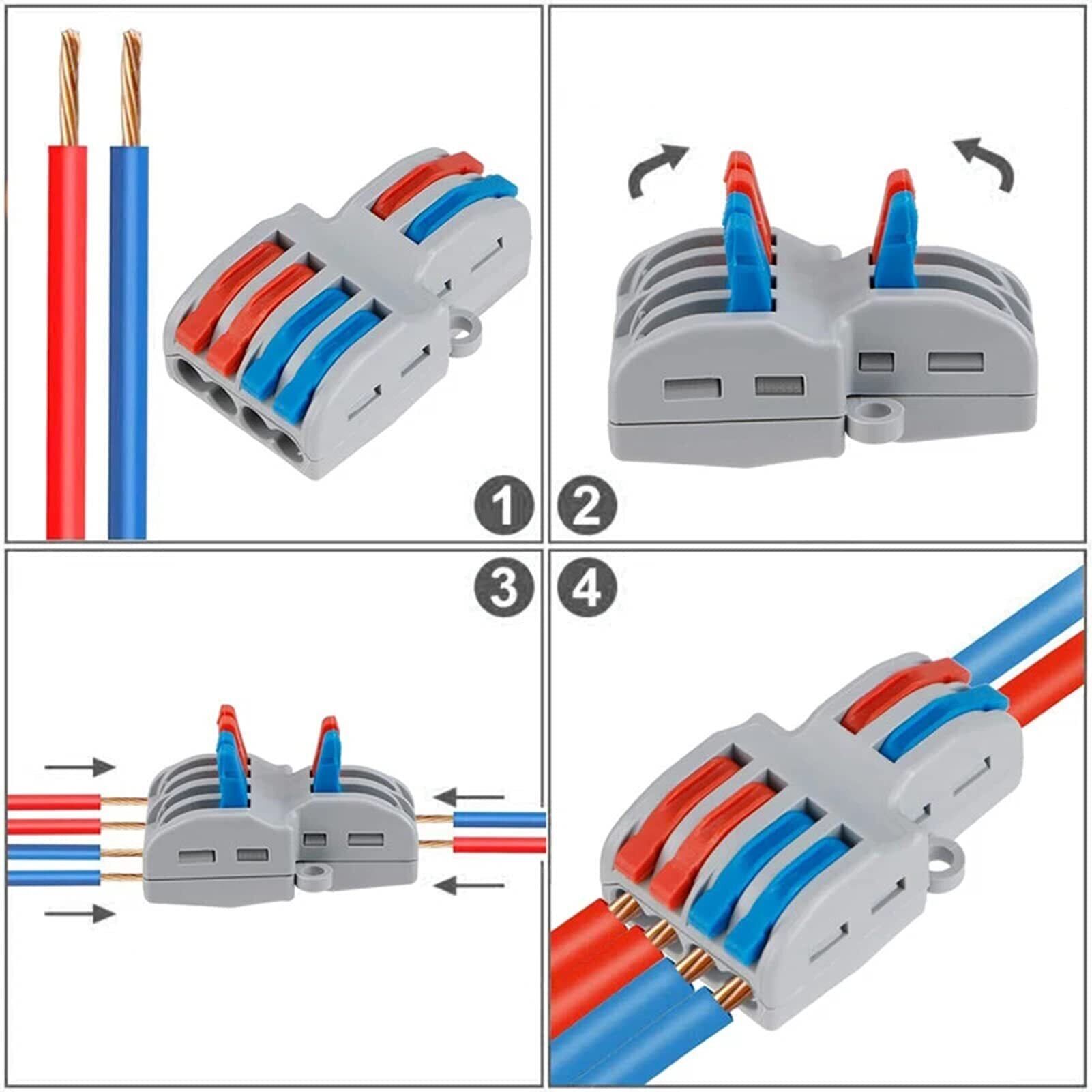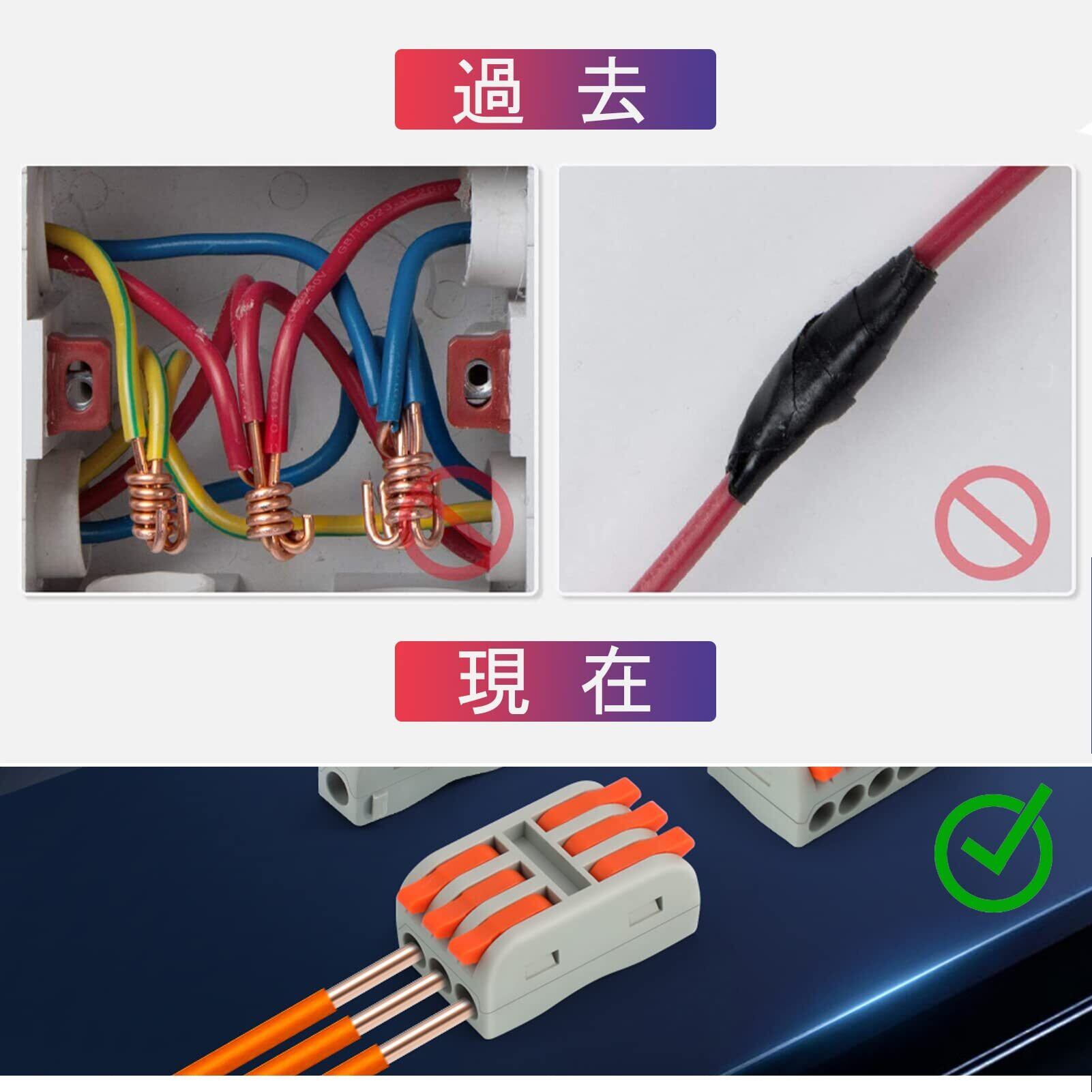 【パッケージリスト】10個2 in 2 out 従来の粘着テープや絡み合ったバットコネクタの代わりに、レバータイプのワイヤコネクタ。建物や日常の家庭用配線に適しています。例えば照明、ソケット、スイッチ、車、スピーカー、電気ボックス、ファン制御などで使えることができます。