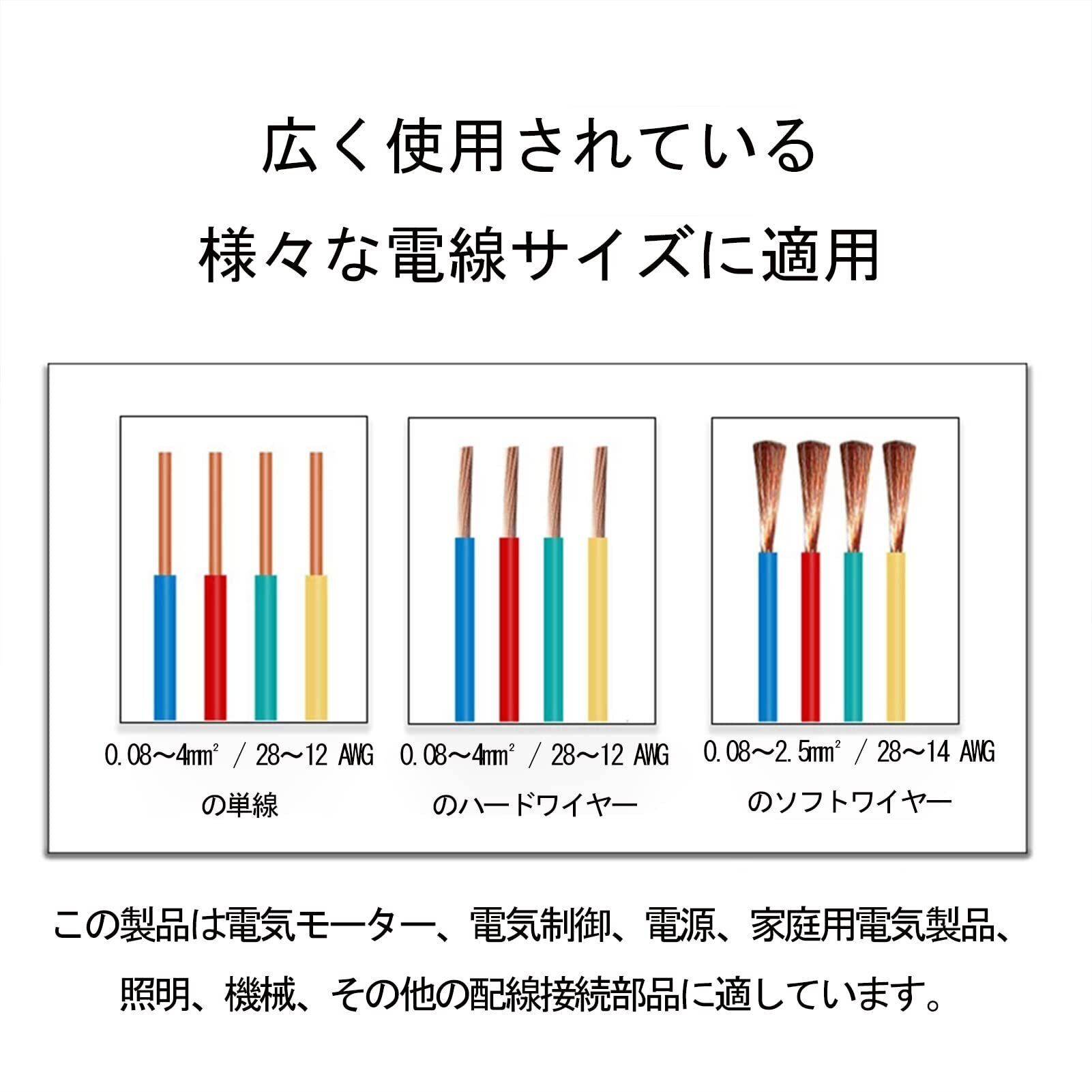 【広く使用されている】ユニバーサルコネクタです。0.08〜4.0mm² / 28-12AWGのハードワイヤおよび0.08〜2.5mm² / 28-14AWGのソフトワイヤに適しています。