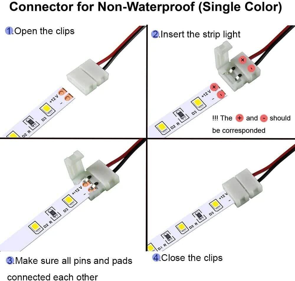 ✪ 8mm幅のSMD 3528 2835単色LEDテープライト用延長コネクタです。 テープライト同士のカット箇所を半田を無しで連結できます。