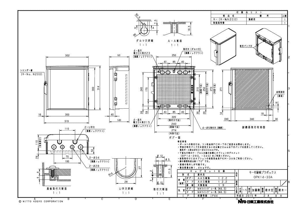 日東工業(NiTO) キー付耐候プラボックス(屋根付) OPK14-33A